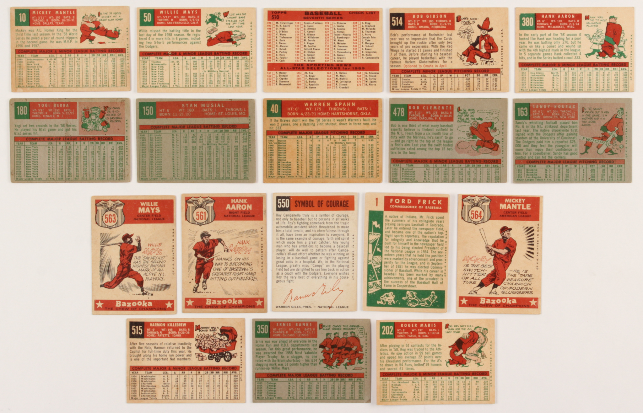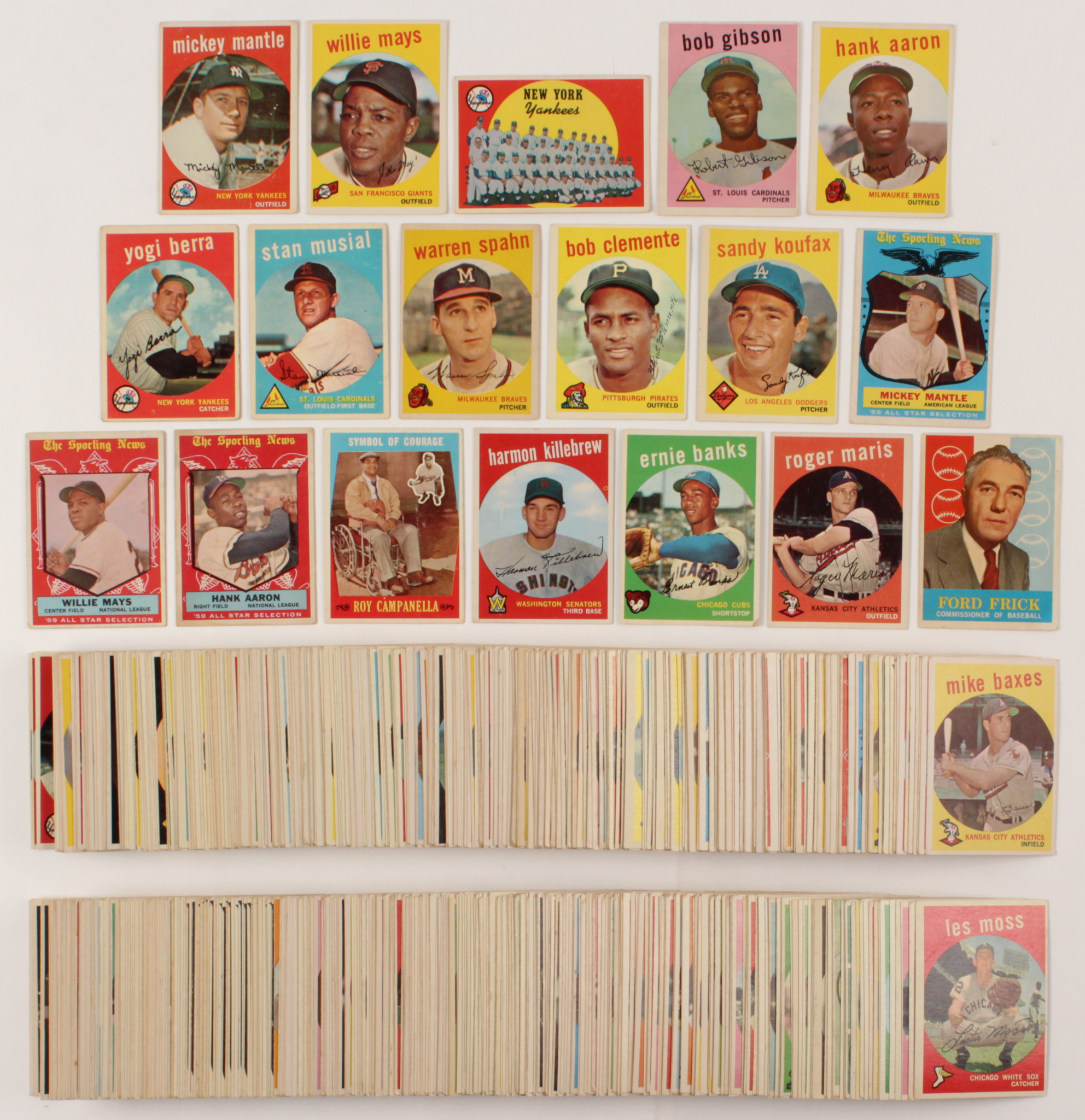 1959 Topps Complete Set of (572) Baseball Cards with #10 Mantle, #50 Mays, #163 Koufax, #380 Aaron, #514 Gibson RC & #564 Mantle AS