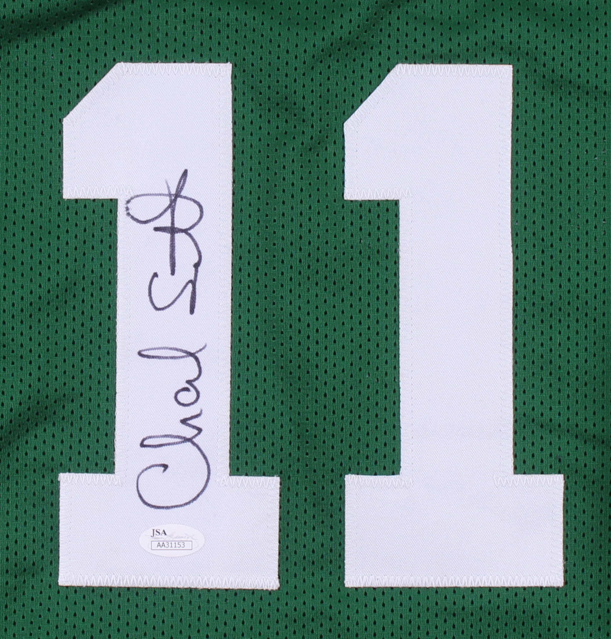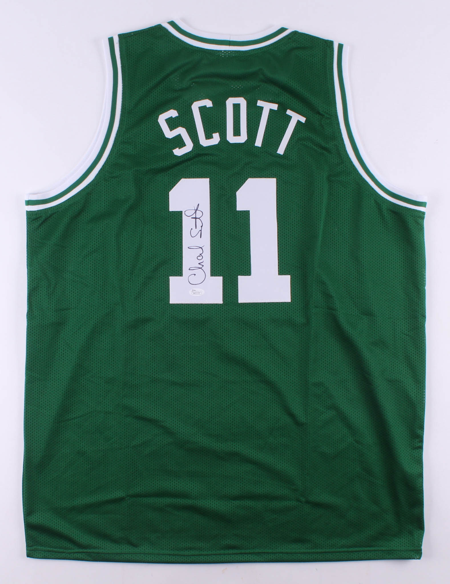 Custom on-court style jersey. Everything is sewn on, size XL. Hand-signed in black felt-tip pen by Charlie Scott. (HOF)