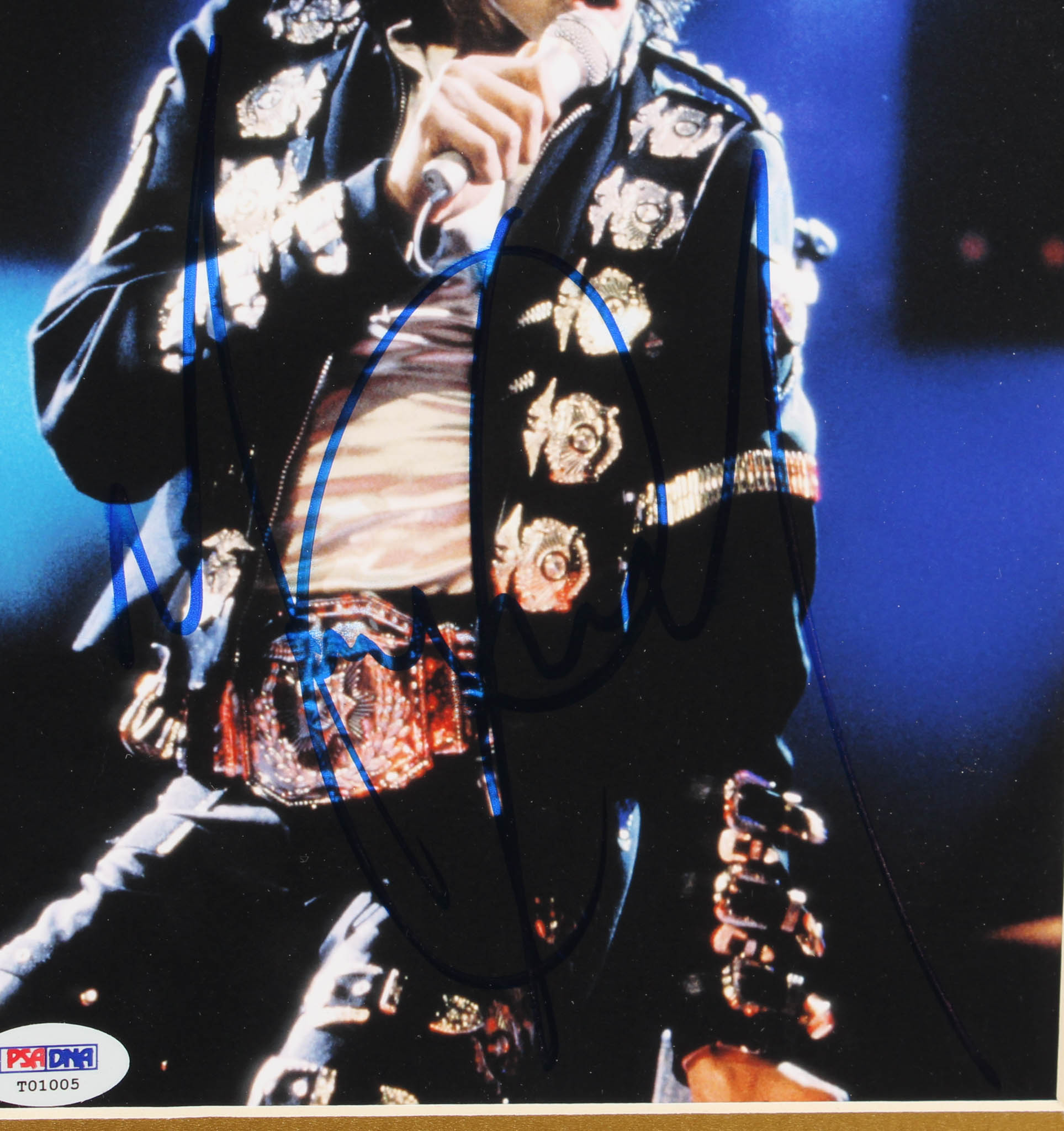 Custom frame measures 16" x 20" in size and features a photo that has been hand-signed in blue felt-tip pen by Michael Jackson (D. 2009).