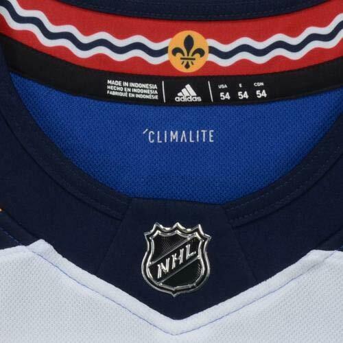 Adidas on-ice style jersey. Everything is sewn on, size 54. Hand-signed in silver paint pen by Jordan Binnington.