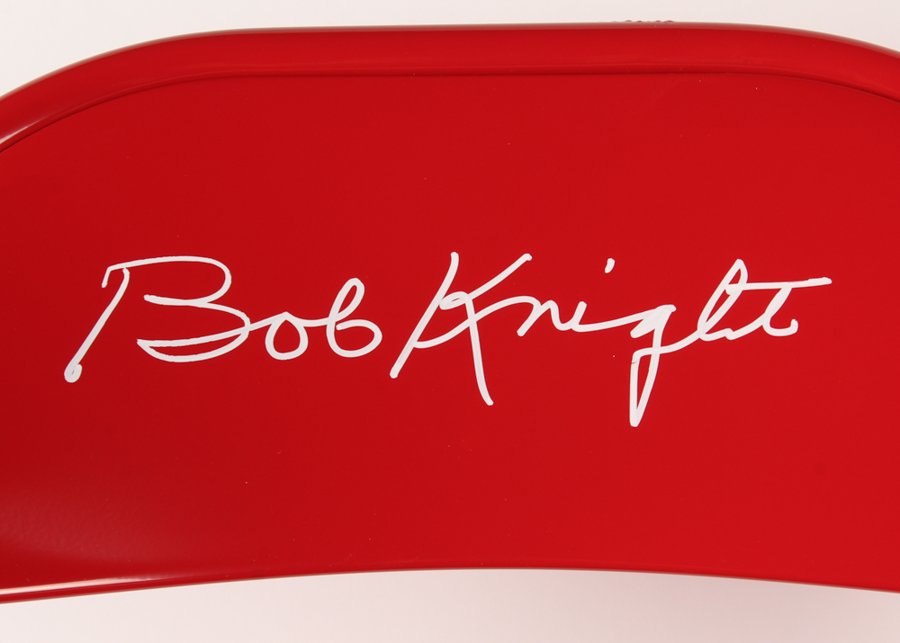 Metal folding chair has been hand-signed in white paint pen by Bob Knight (Indiana Hoosiers, HOF). Please see photos for details regarding the condition of the chair.