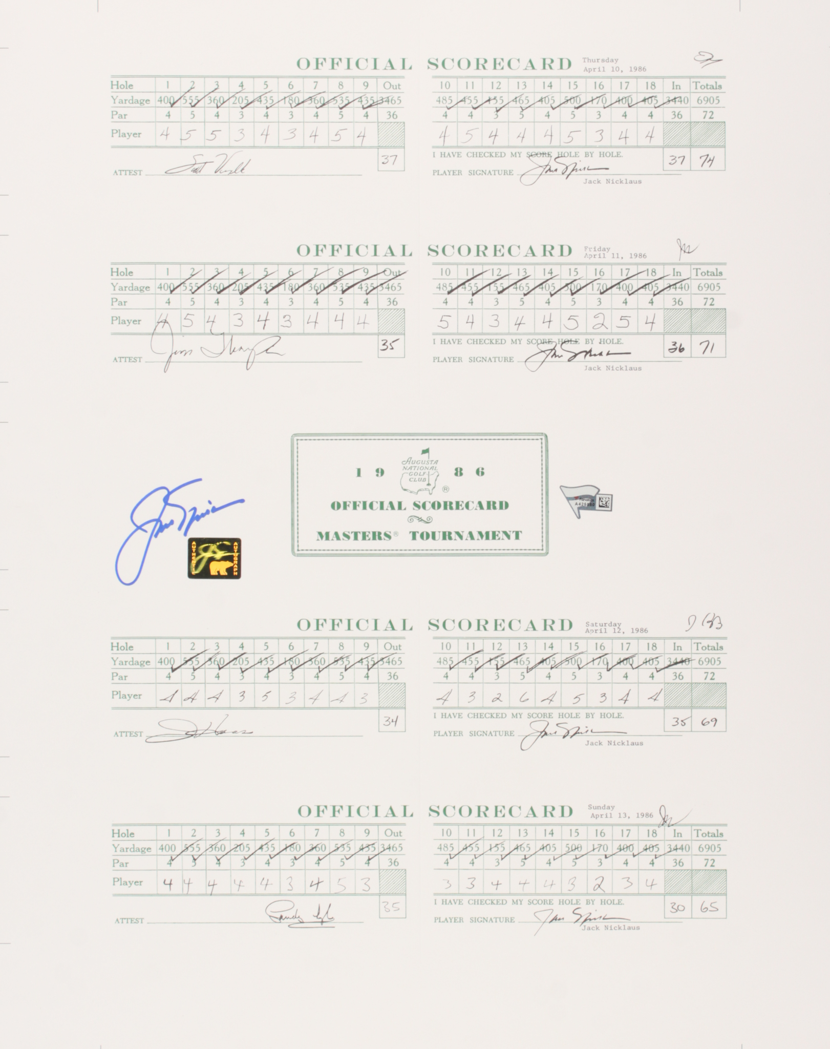 Jack Nicklaus Signed 1986 Masters Full Scorecard 16x20 Print (Fanatics Hologram & Nicklaus Hologram)