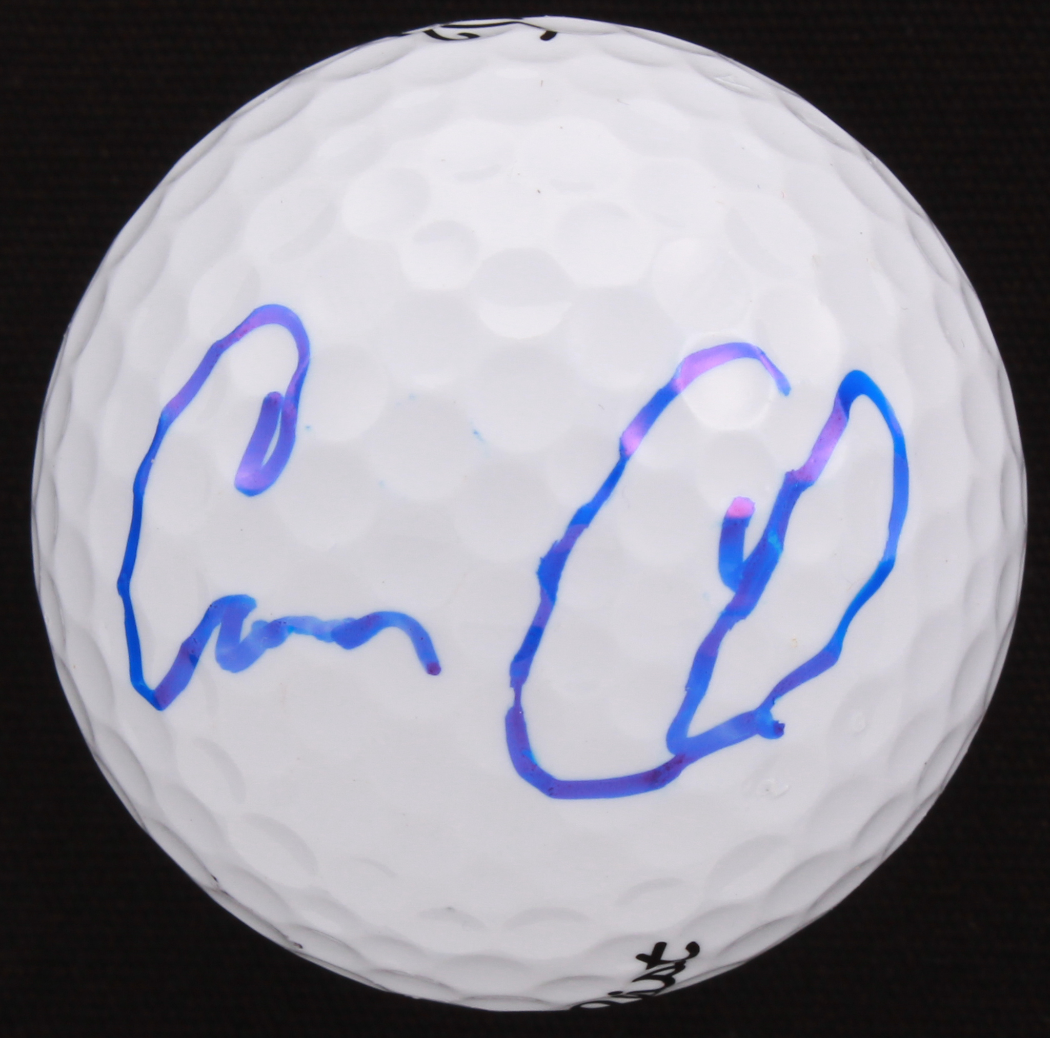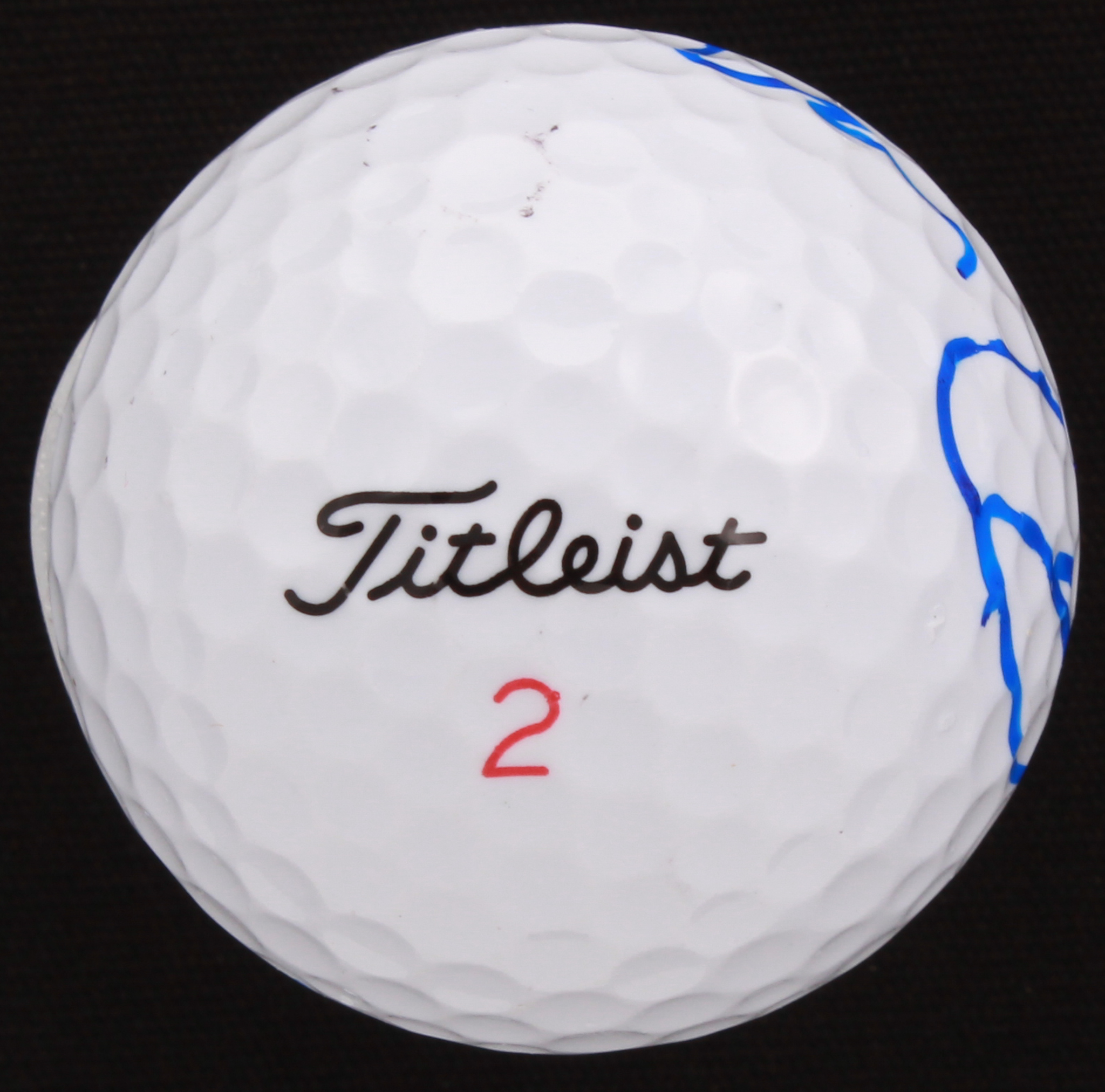 Titleist golf ball has been hand-signed in blue felt-tip pen by Cameron Champ.
