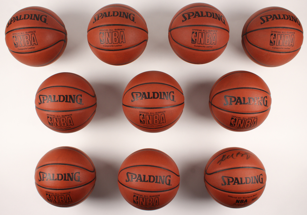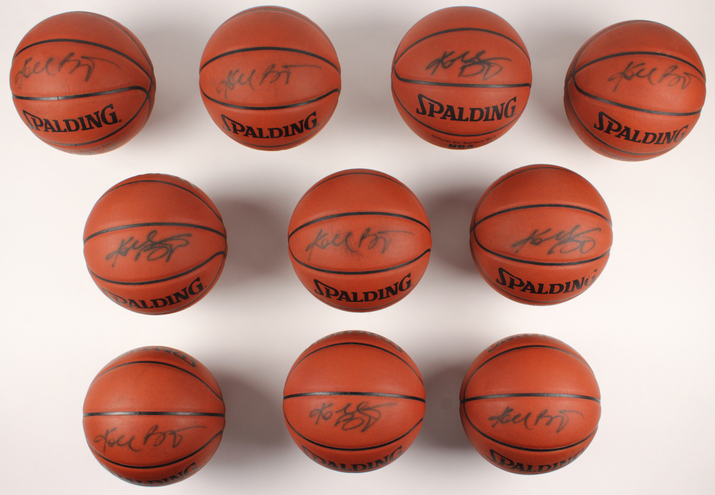Lot includes all (10) Spalding NBA logo basketballs shown. Each have been hand-signed in black felt-tip pen by Kobe Bryant (Los Angeles Lakers). Please see photos for more information regarding the condition of the basketballs.