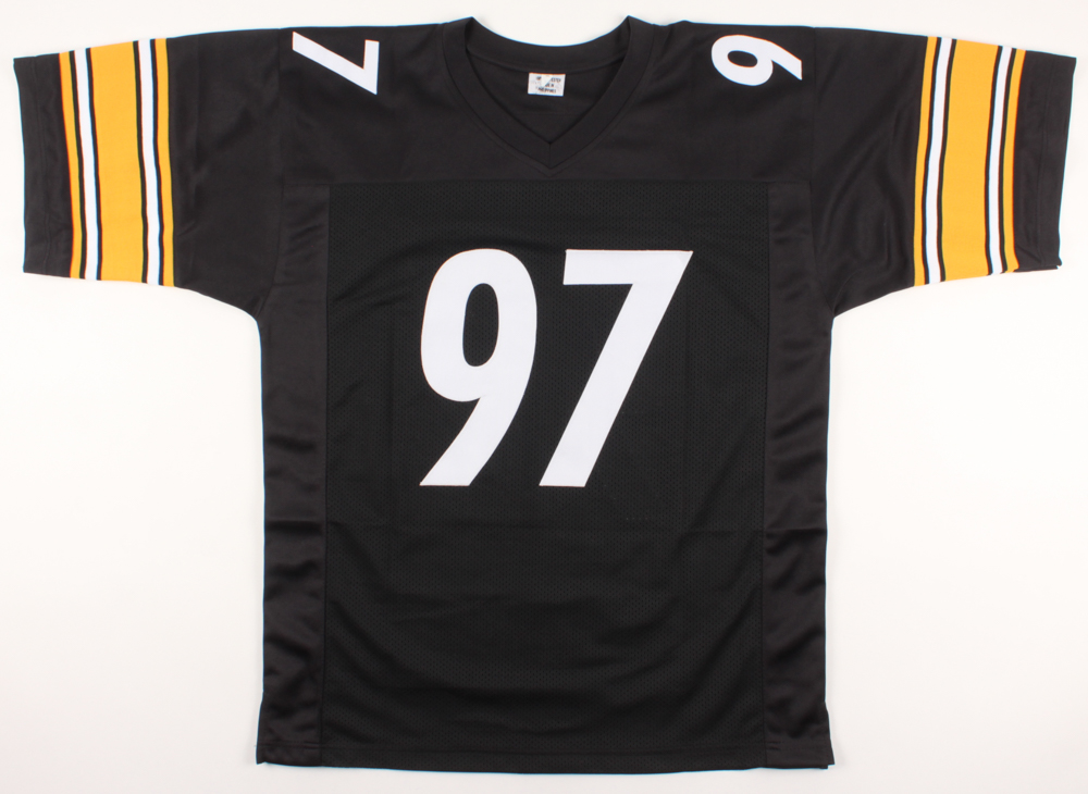 Custom on-field style jersey. Everything is sewn on, size XL. Hand-signed in black felt-tip pen by Cameron Heyward.