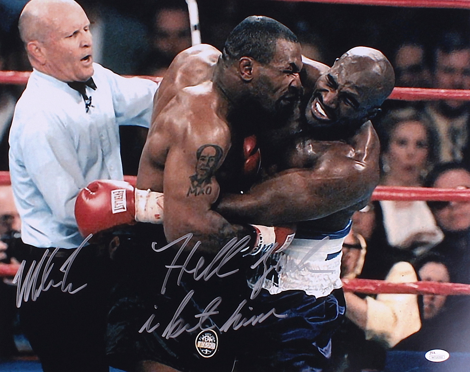 Mike Tyson Signed 16x20 Photo vs. Evander Holyfield Inscribed "Hell yeah I bit him"(JSA COA)