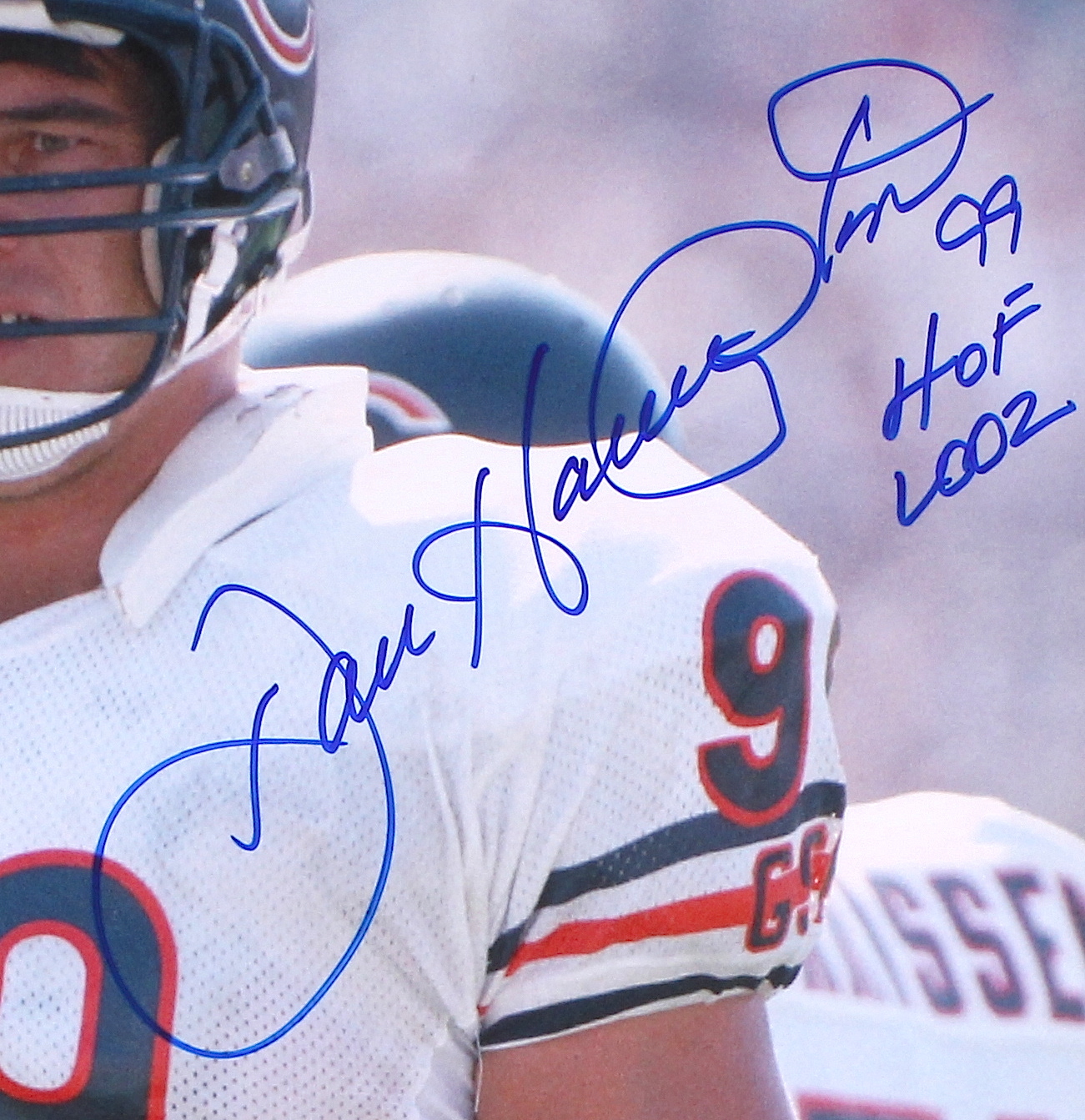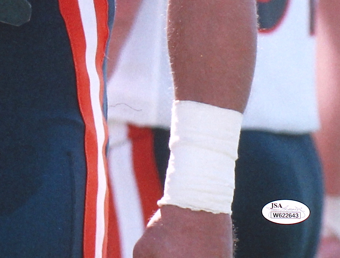 Photo measures 16 " x 20 " in size and has been hand-signed in blue felt-tip pen by Dan Hampton (Bears, HOF). The autograph includes an official James Spence Authentication (JSA) hologram and matching COA for authenticity purposes. The signing of this item was witnessed by JSA.