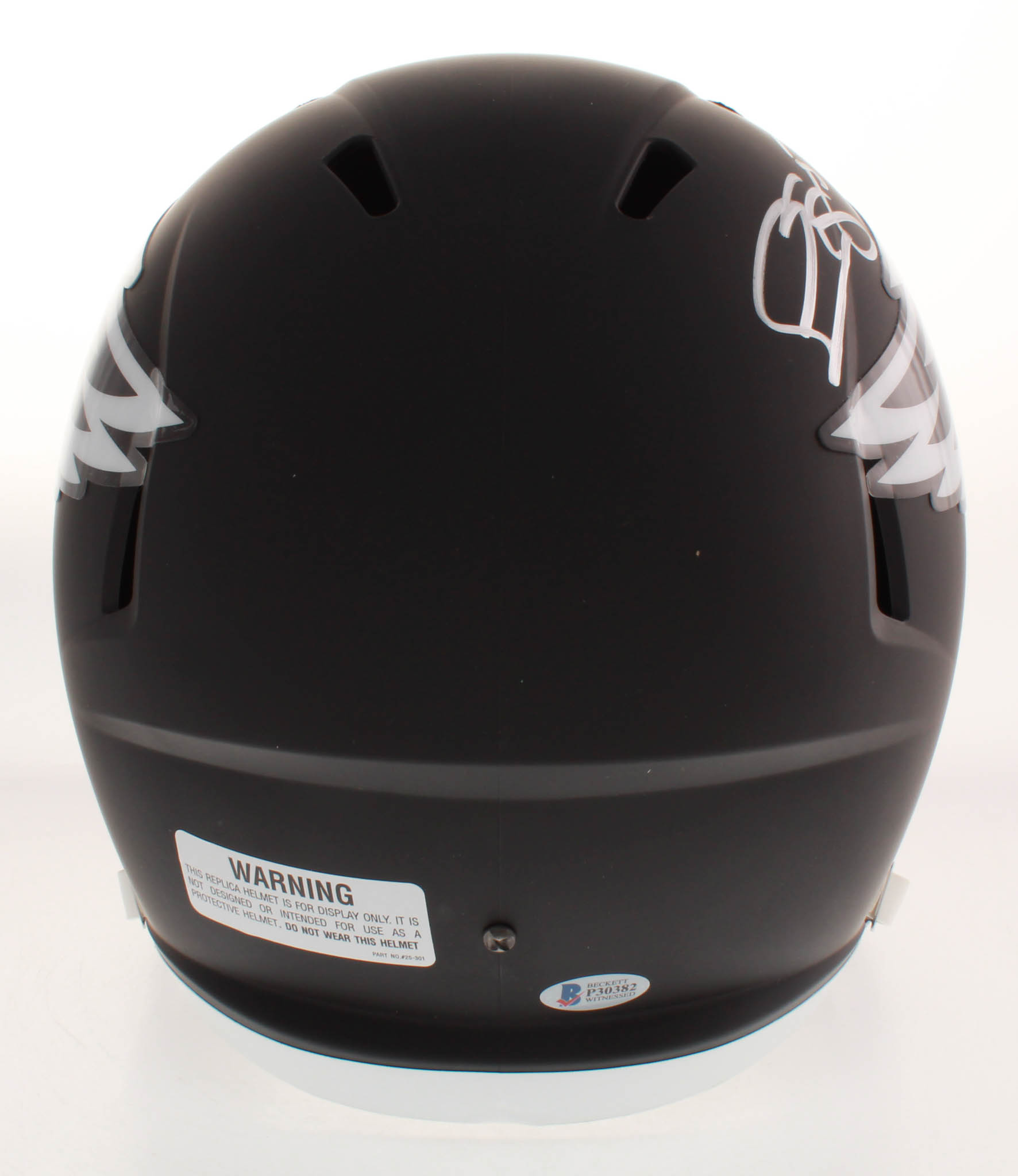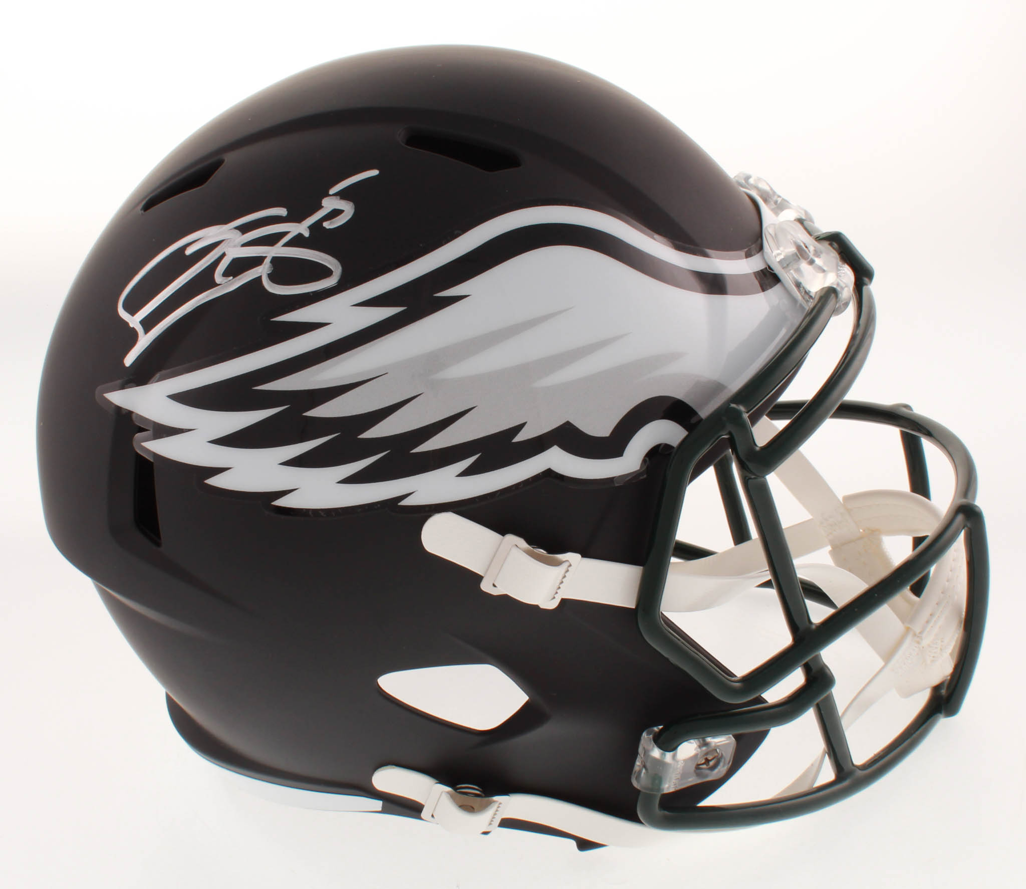 Riddell Philadelphia Eagles full-size replica matte black speed helmet. Hand-signed in silver paint pen by Donovan McNabb.