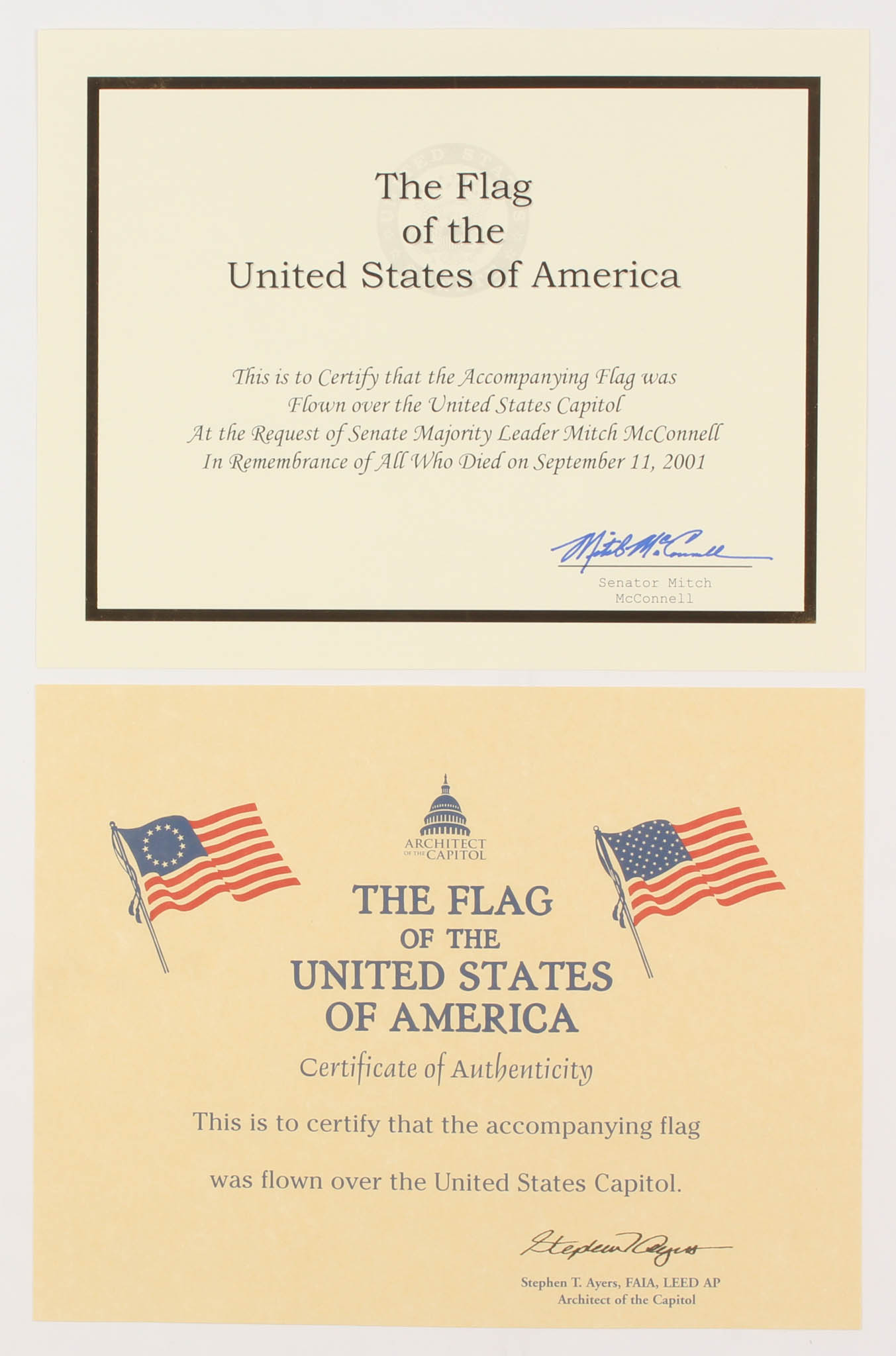 The flag includes an official COA from the Architect of the Capitol for authenticity purposes.