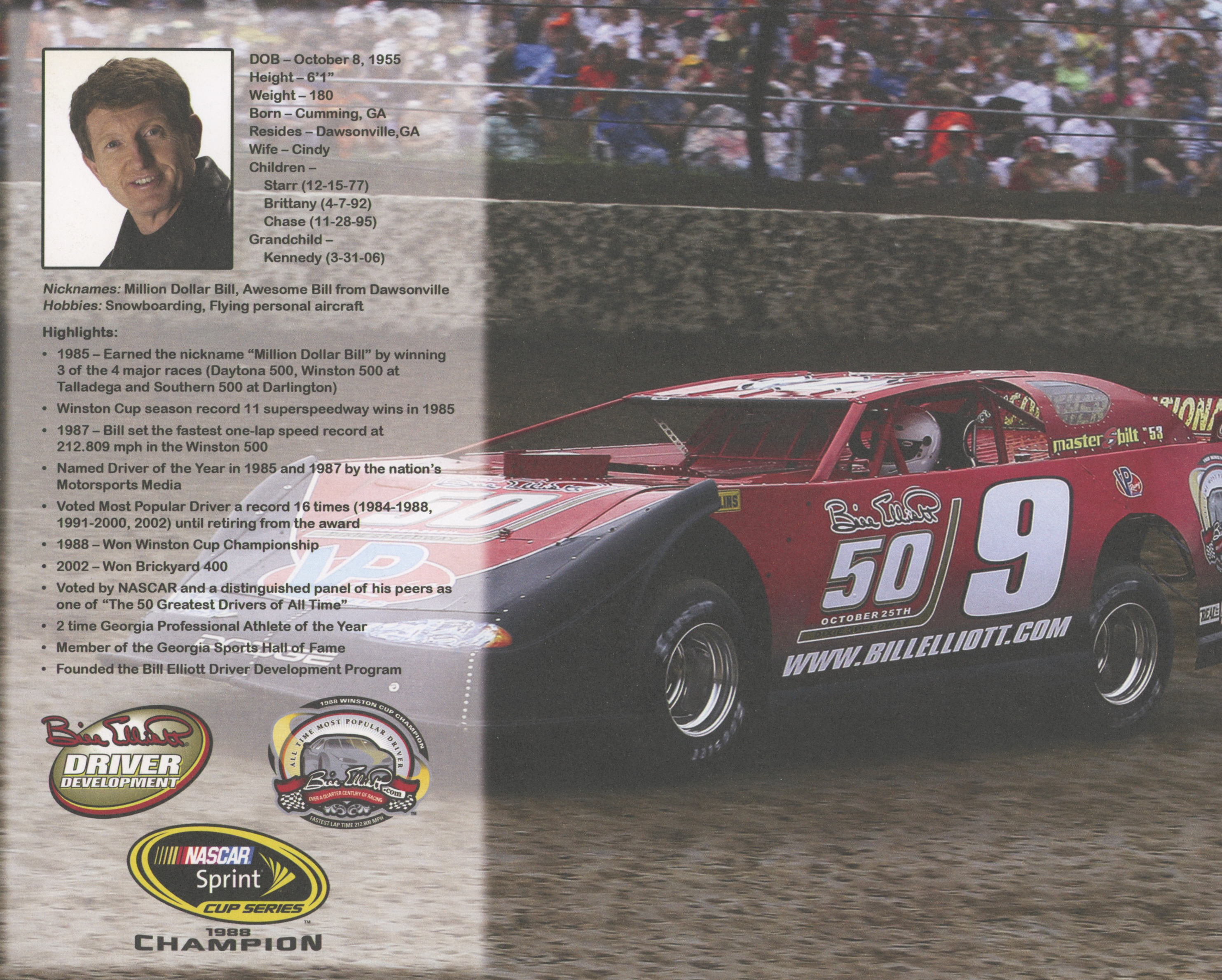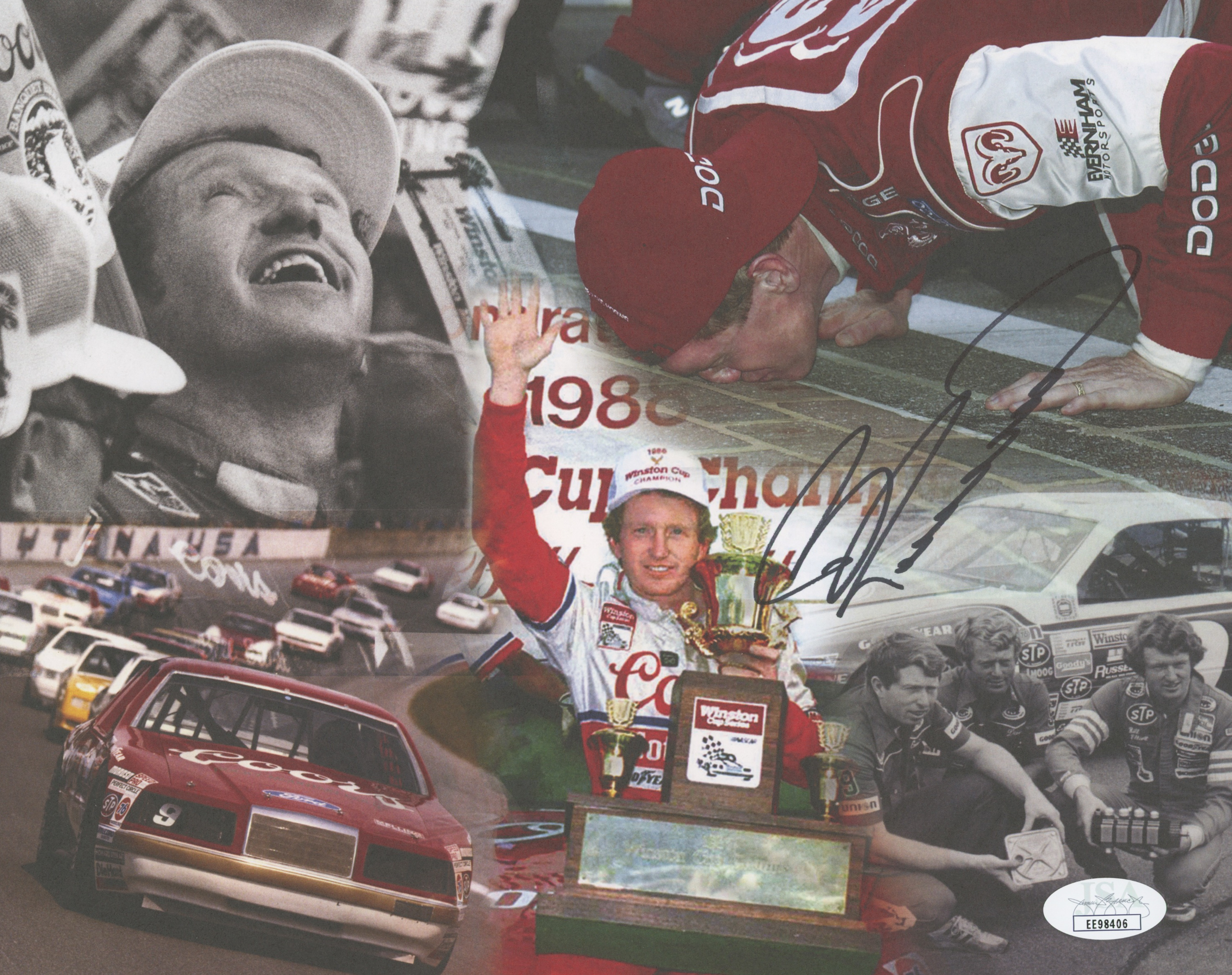 Photo measures 8" x 10" in size and has been hand-signed in black felt-tip pen by Bill Elliott (HOF).