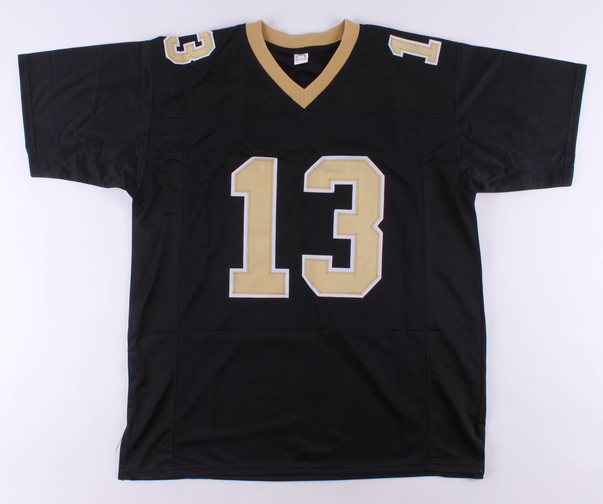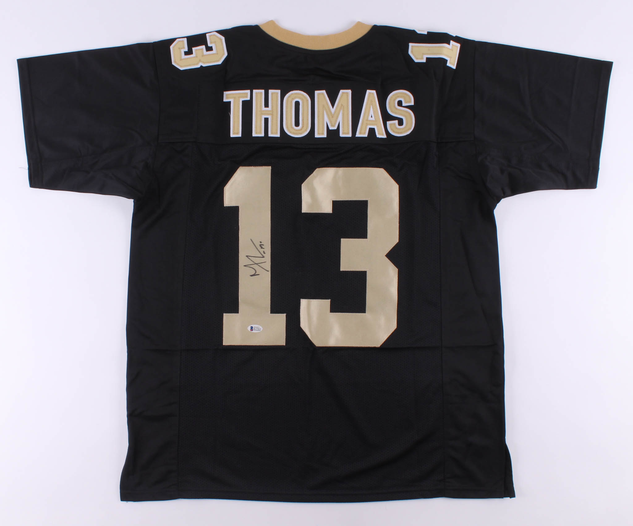 Custom on-field style jersey. Everything is sewn on, size XL. Hand-signed in black felt-tip pen by Michael Thomas.