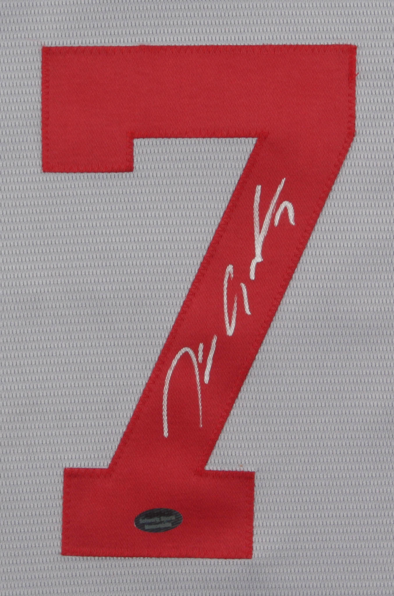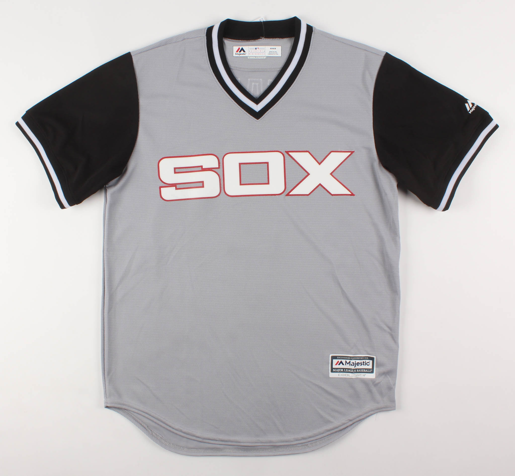 Majestic on-field style jersey. Everything is sewn on, size M. Hand-signed in silver paint pen by Tim Anderson.