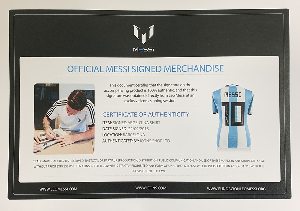 The lot / autograph(s) includes an Official Icons Lionel Messi COA for authenticity purposes.