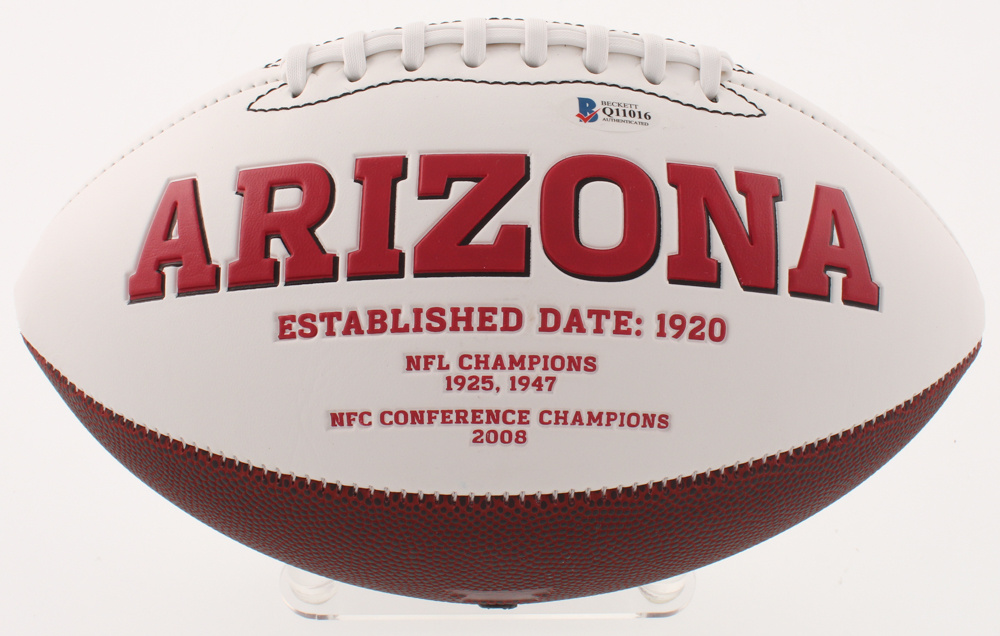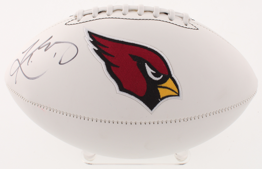 Arizona Cardinals logo football. Hand-signed in black felt-tip pen by Kyler Murray.