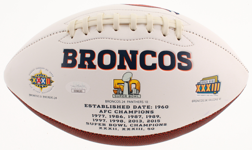 Denver Broncos logo football. Hand-signed in black felt-tip pen by Von Miller.