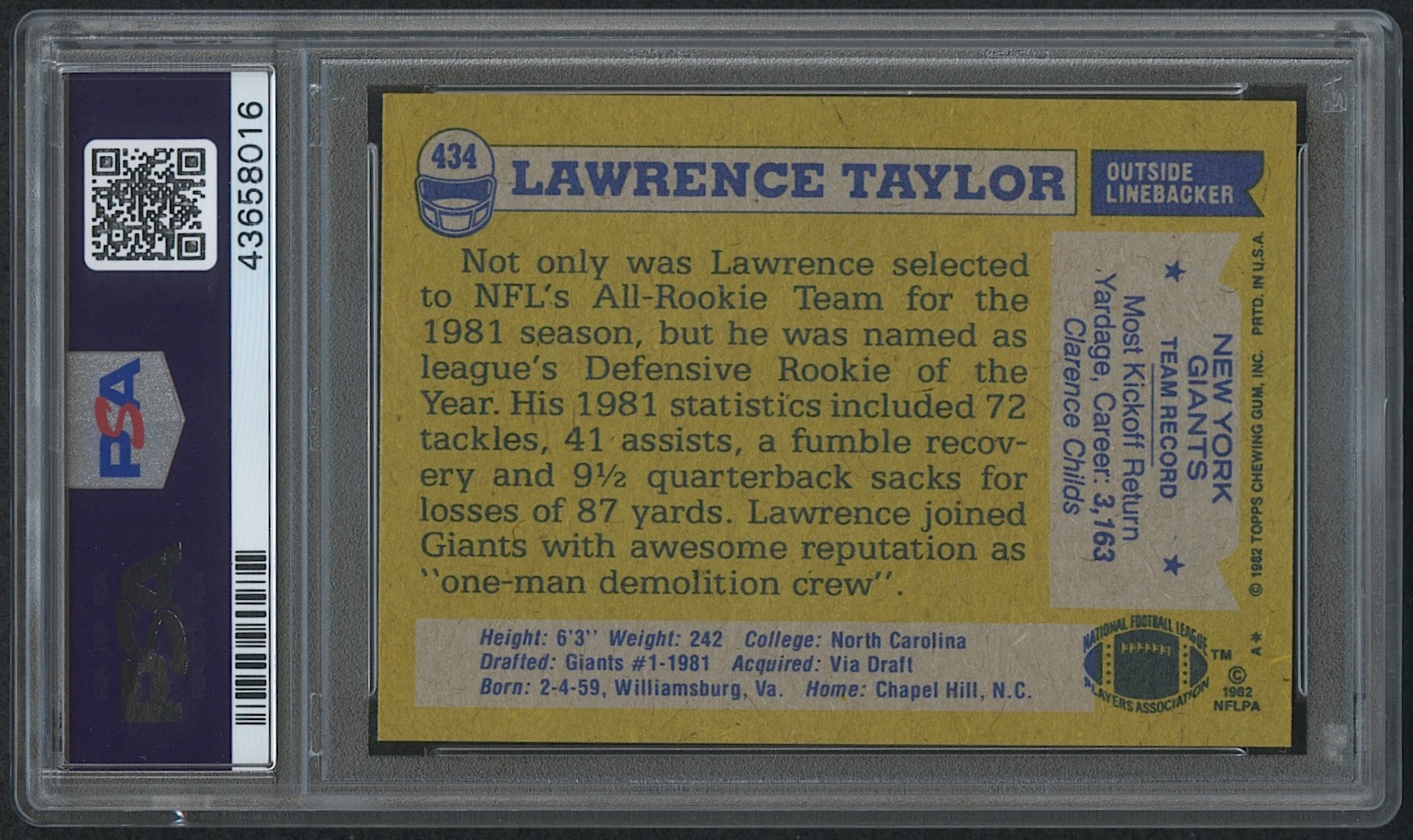 1982 Topps #434 Lawrence Taylor RC (PSA 9)