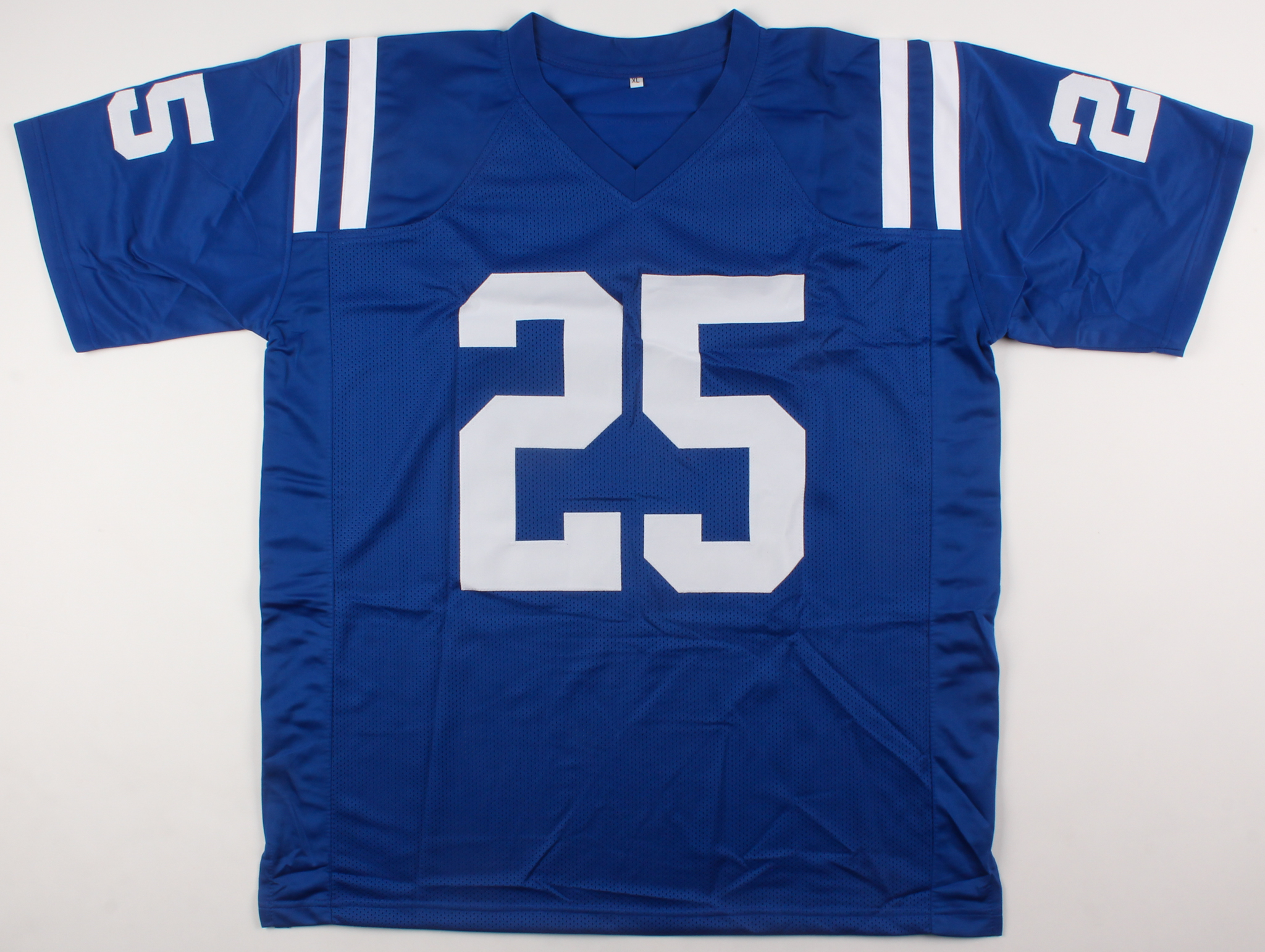 Custom on-field style jersey. Everything is sewn on, size XL. Hand-signed by Marlon Mack.