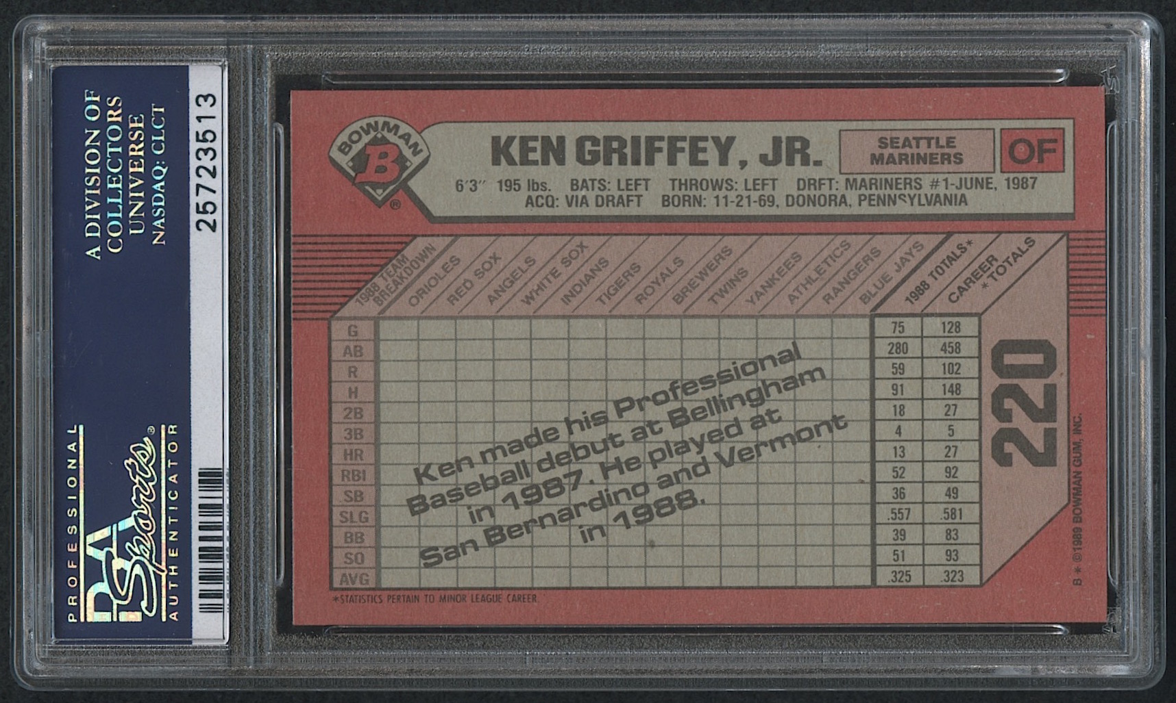 1989 Bowman #220 Ken Griffey Jr. RC (PSA 10)