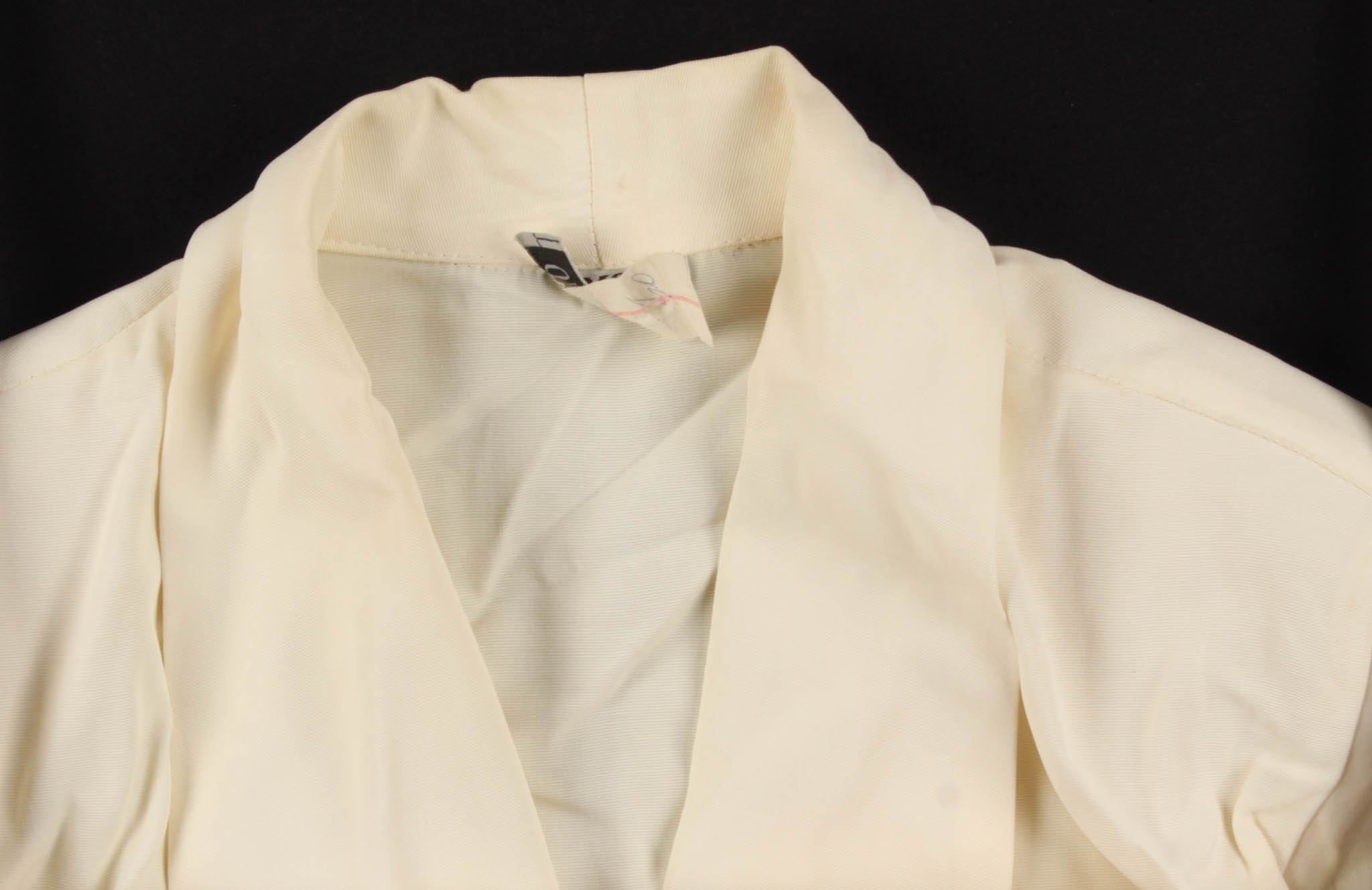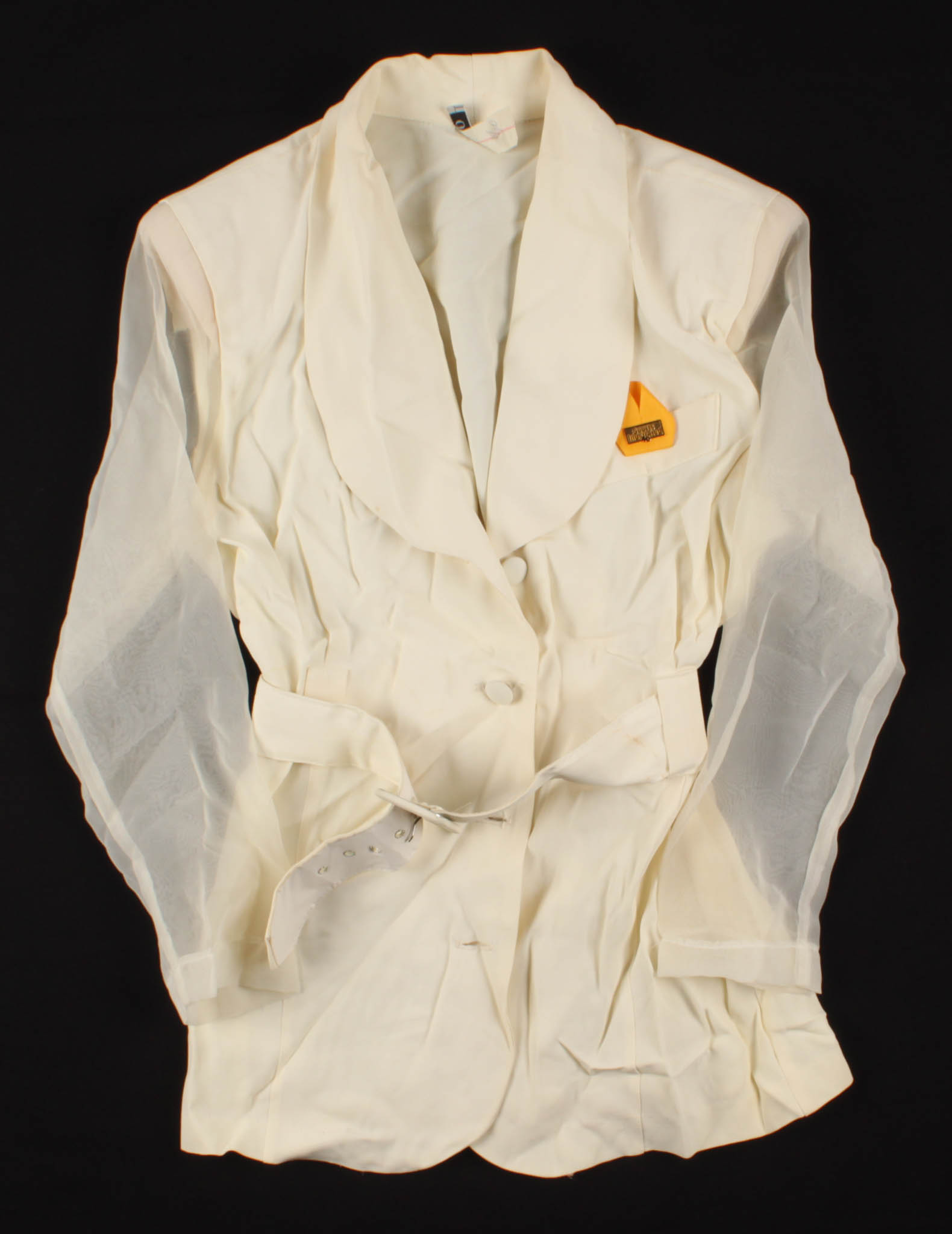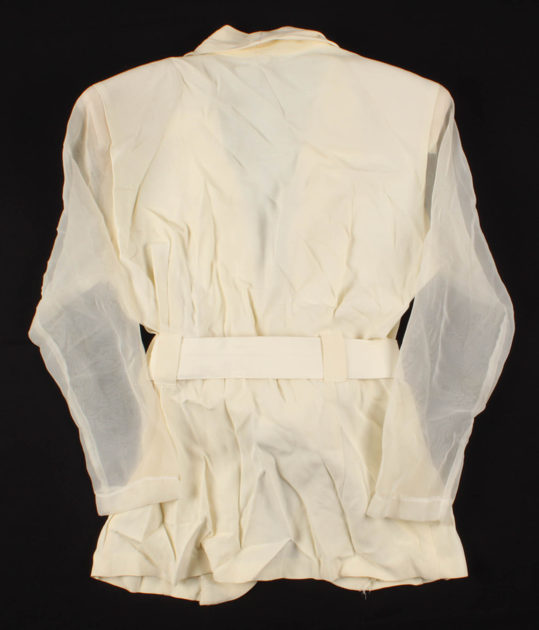 Blouse, size S. The blouse was worn by Olga Korbut for the 1994 Sports Illustrated Forty for the Ages Banquet. Please note, the blouse is not signed and see photos for details regarding the condition of the blouse.