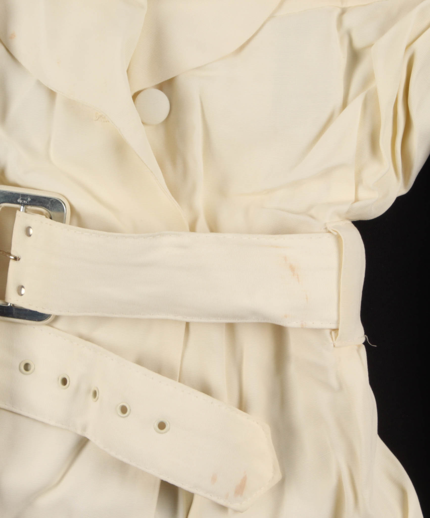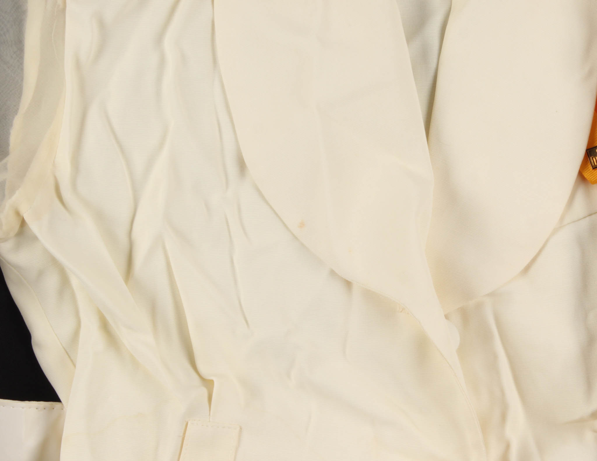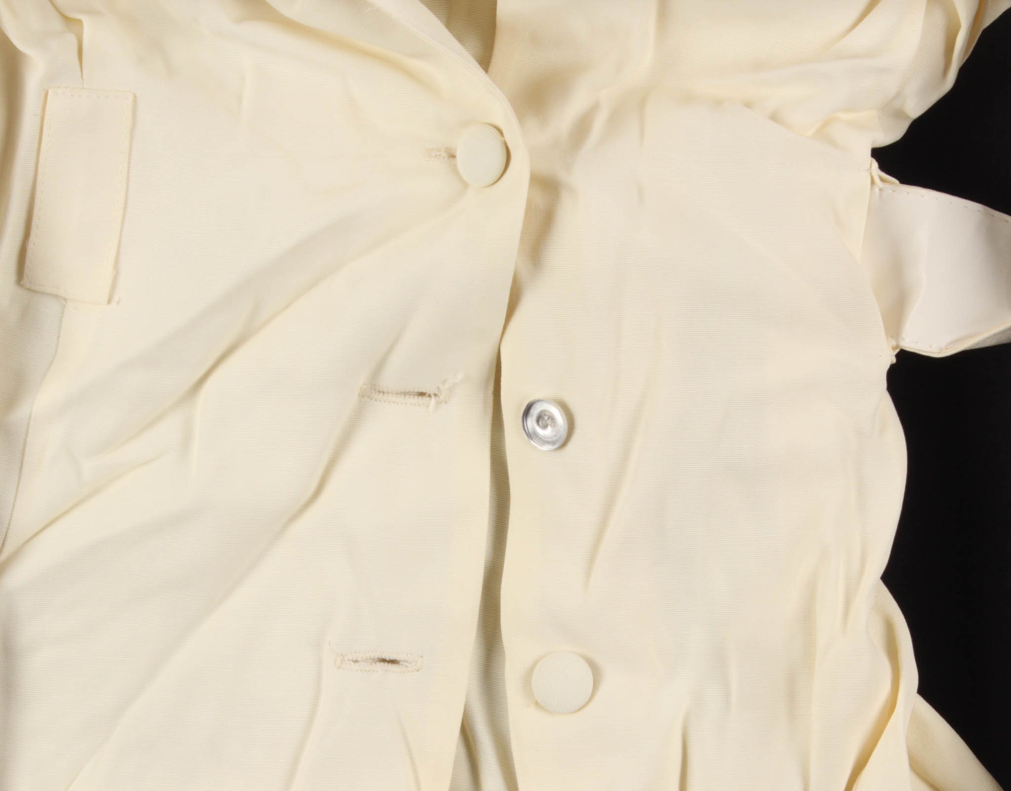 Blouse, size S. The blouse was worn by Olga Korbut for the 1994 Sports Illustrated Forty for the Ages Banquet. Please note, the blouse is not signed and see photos for details regarding the condition of the blouse.