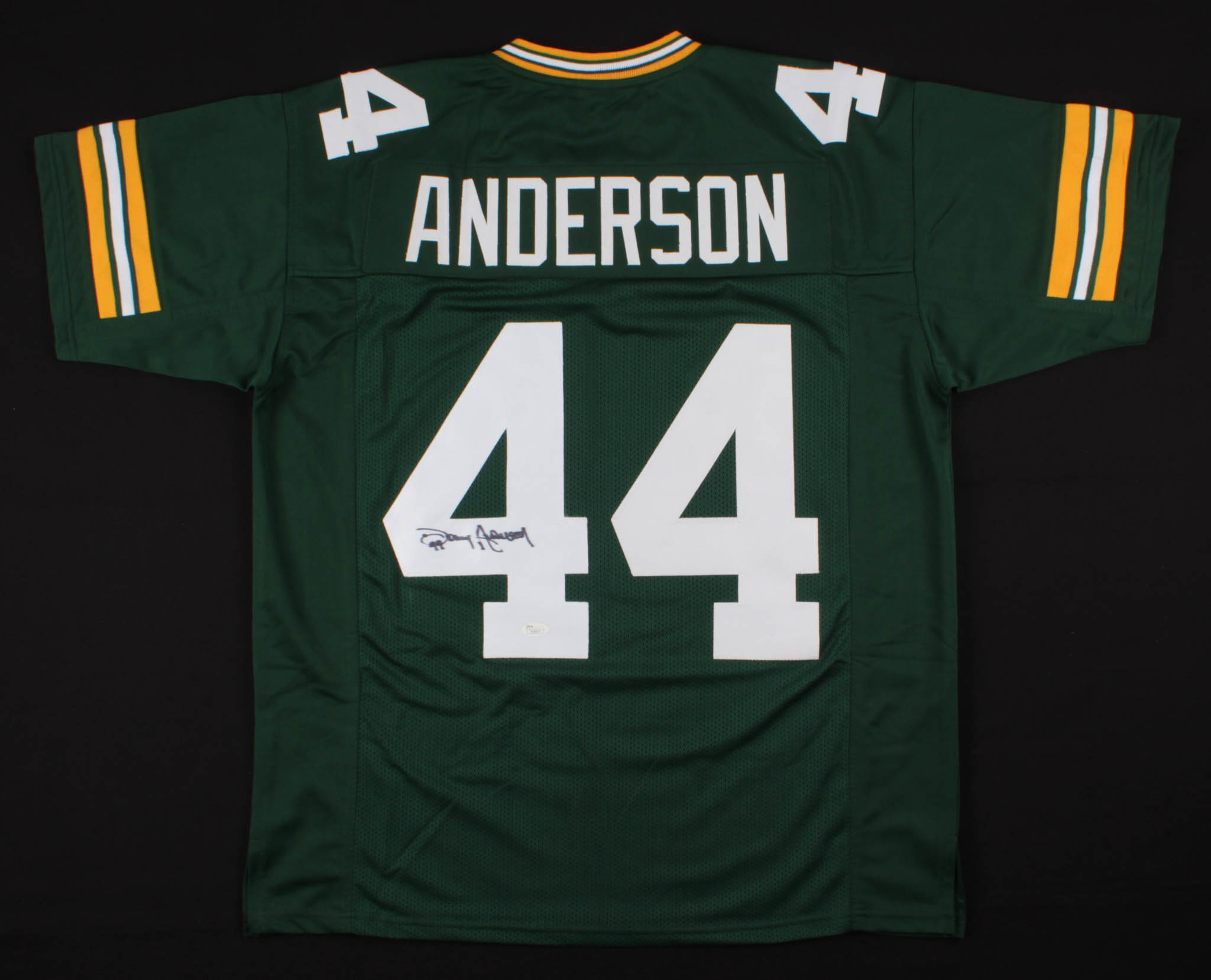 Custom on-field style jersey. Everything sewn on, size XL. Hand-signed in black felt-tip pen by Donny Anderson.