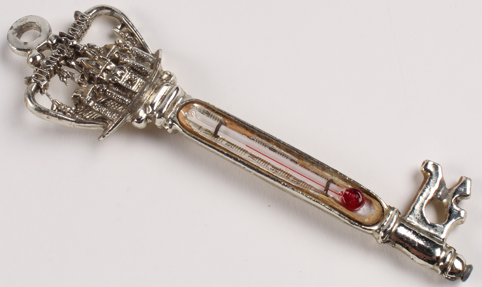 Vintage Pewter Disneyland Souvenir Thermometer Key