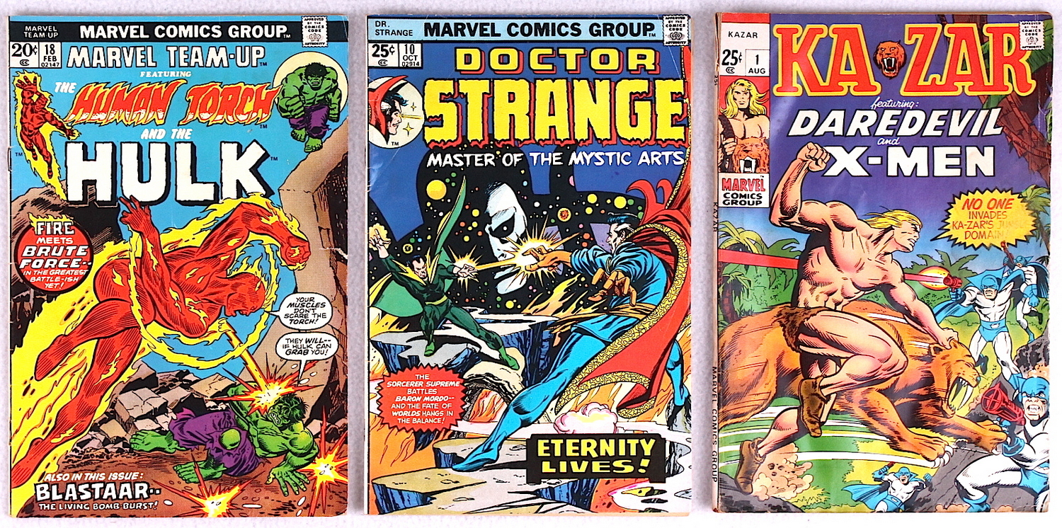 Lot of (3) Vintage Marvel Comic Books with Kazar, Marvel Team Up & Doctor Strange
