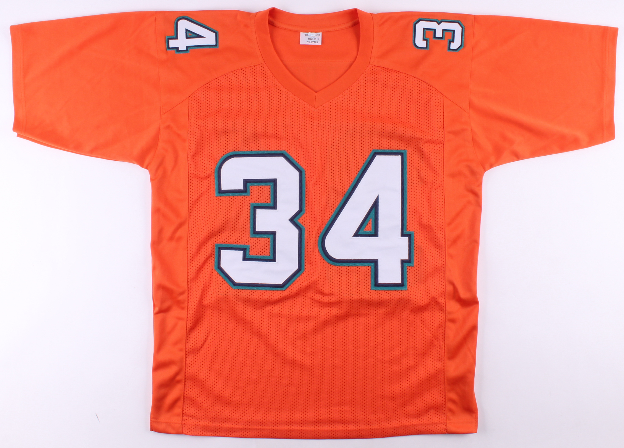Custom on-field style jersey. Everything is sewn on, size XL. Hand-signed in black felt-tip pen by Ricky Williams. Please see photos for details regarding the condition of the jersey.