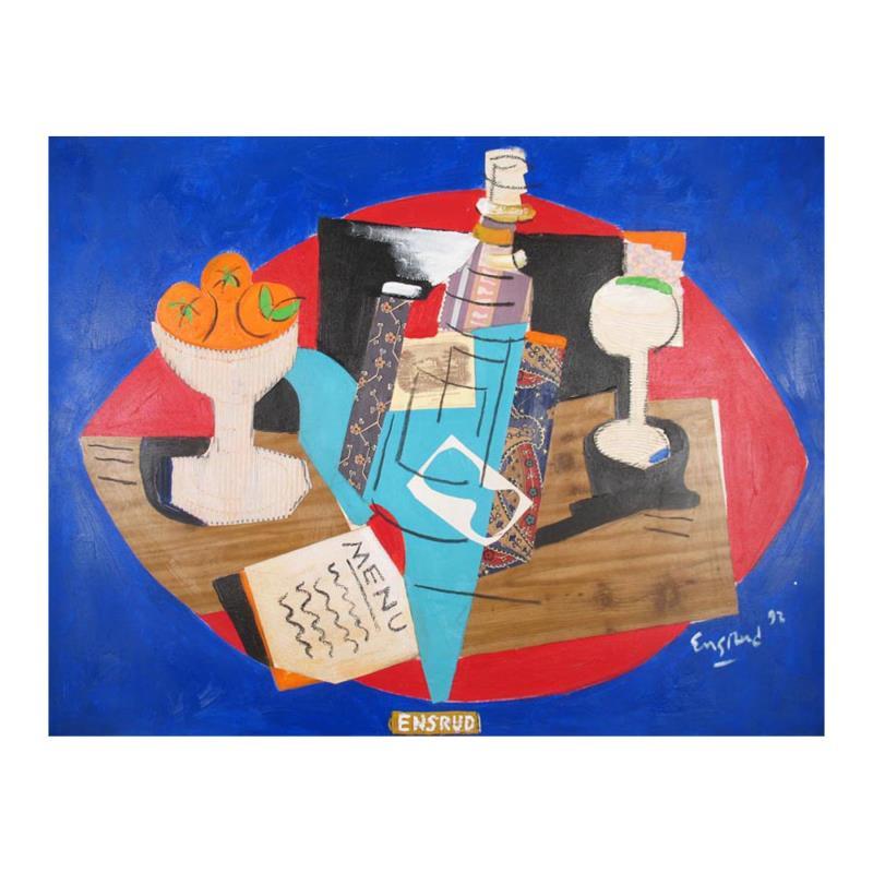 Wayne Ensrud Signed "Still Life with Lafite-Rothschild Label" 24x31 Mixed Media Original Artwork