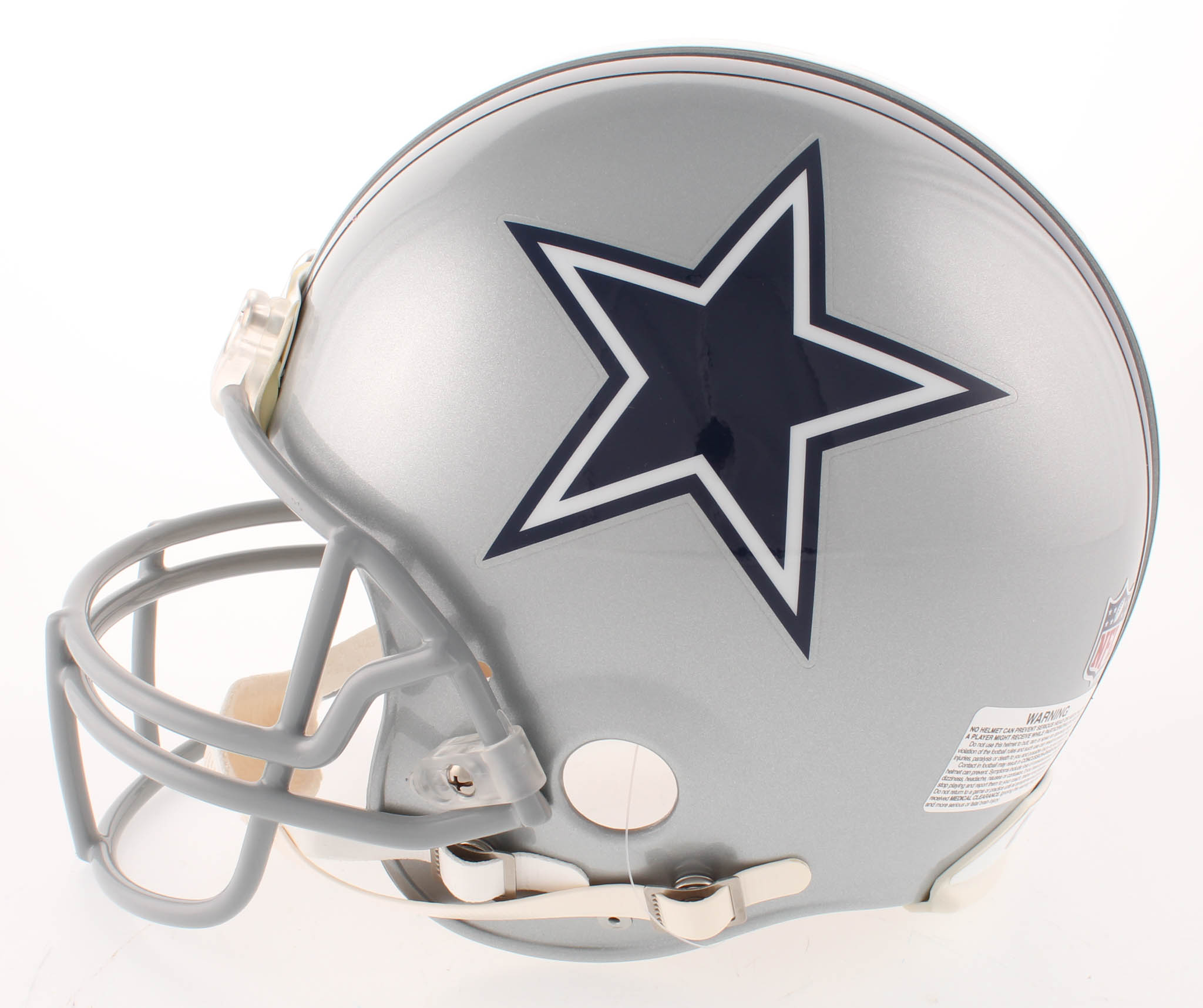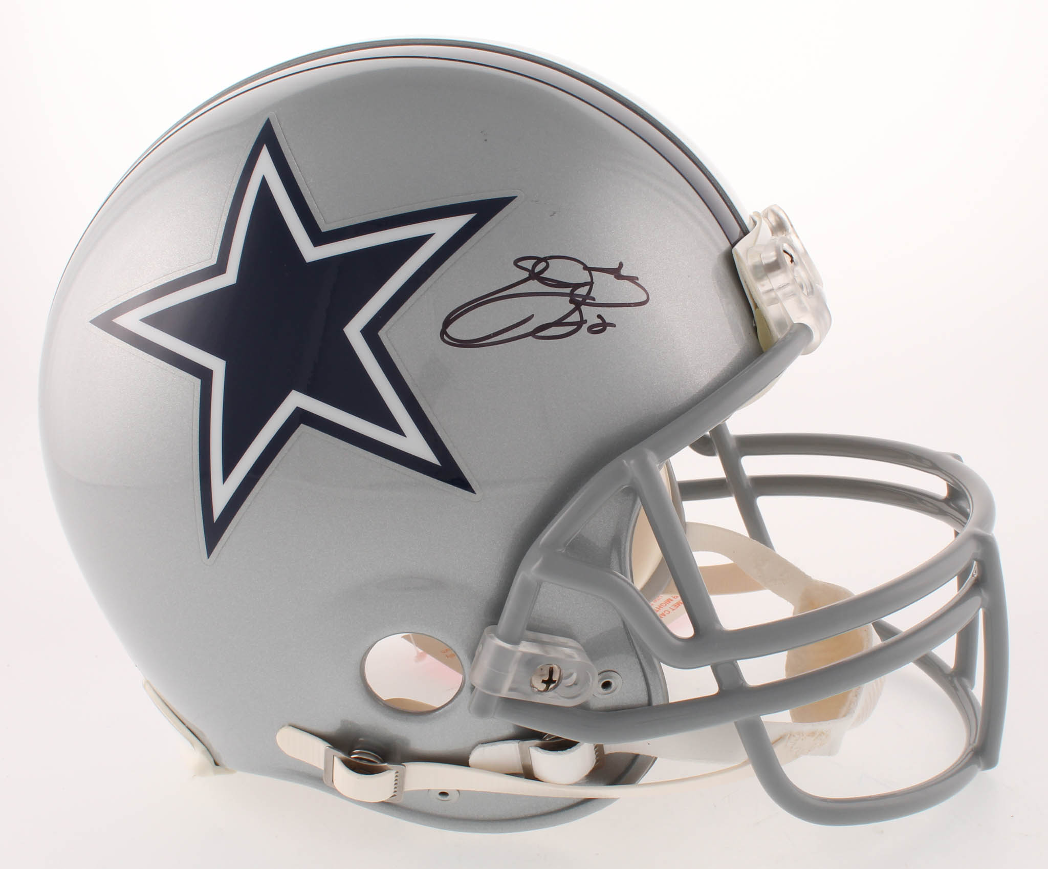 Riddell Dallas Cowboys full-size authentic on-field helmet. Hand-signed in black felt-tip pen by Emmitt Smith (HOF).