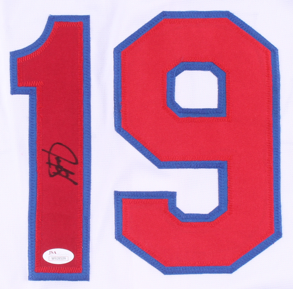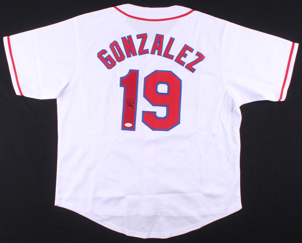 Custom on-field style jersey. Everything is sewn on, size XL. Hand-signed in black felt tip pen by Juan Gonzalez.