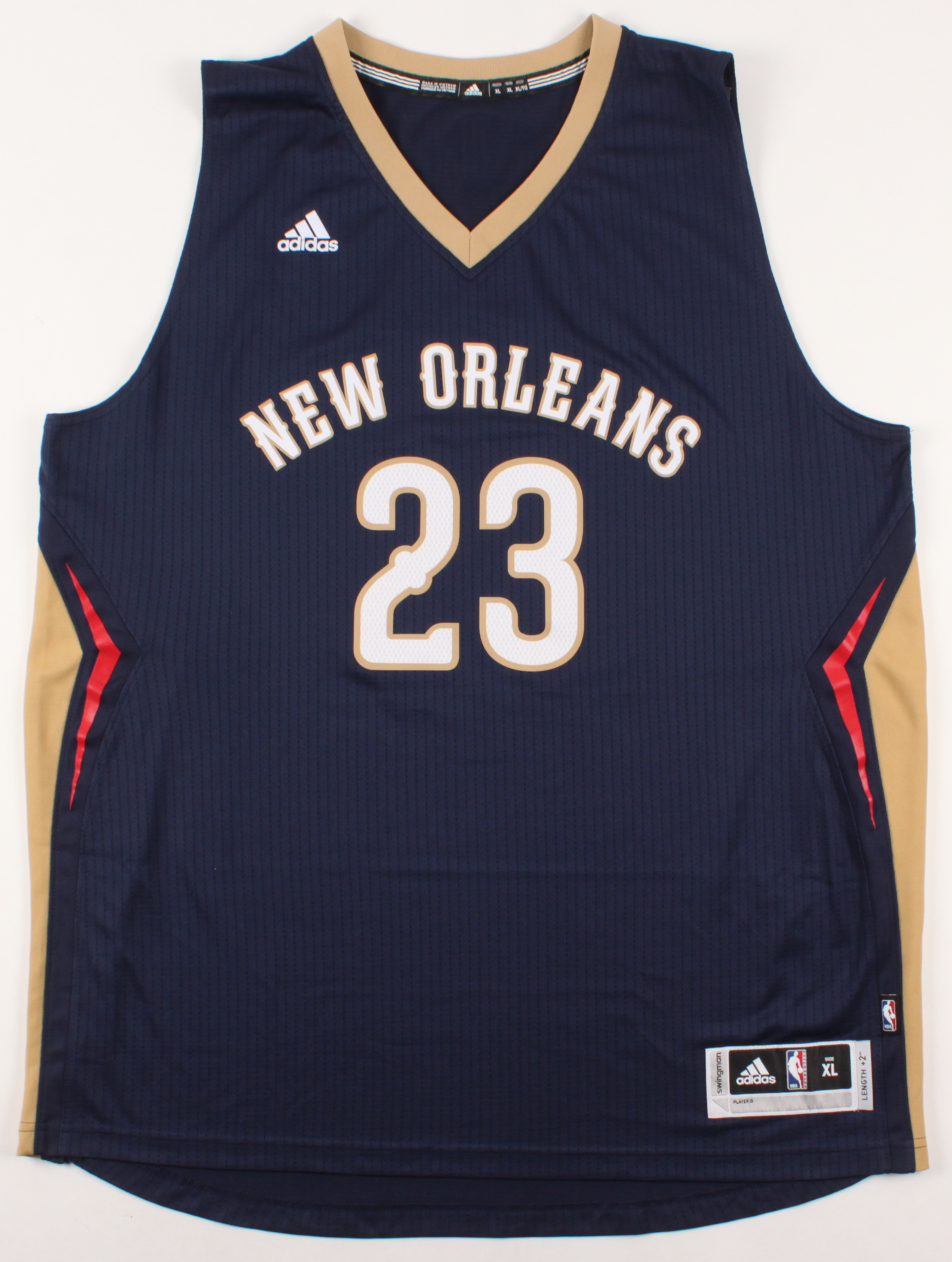 Adidas on-court style jersey. Everything is printed on, size XL. Hand-signed in black felt-tip pen by Anthony Davis.