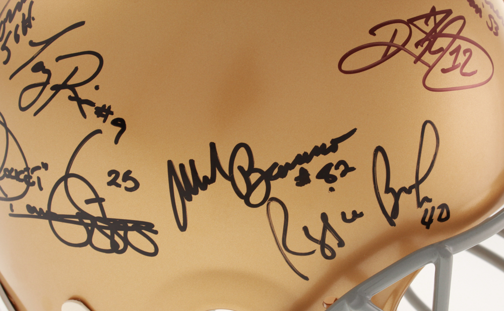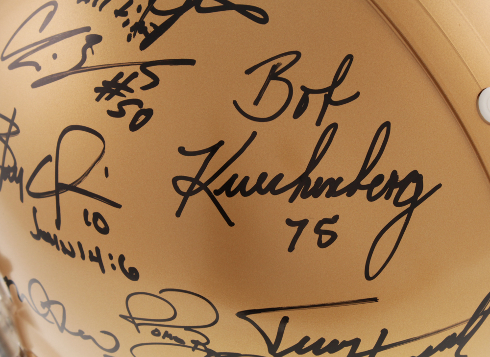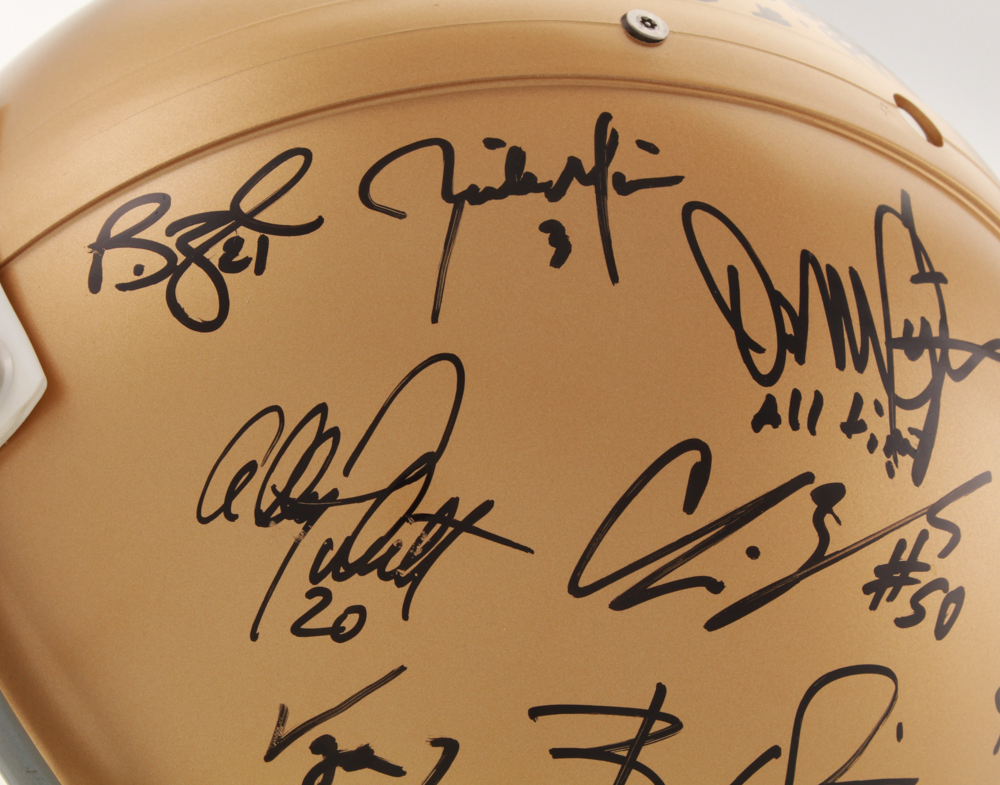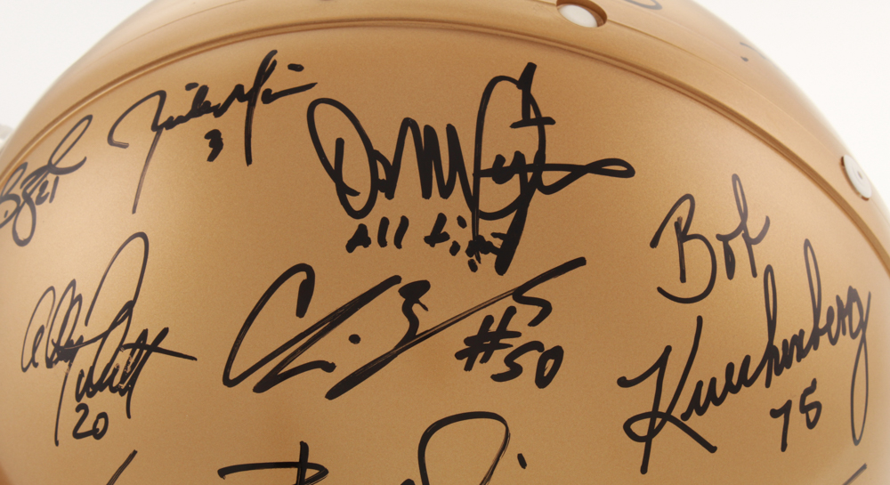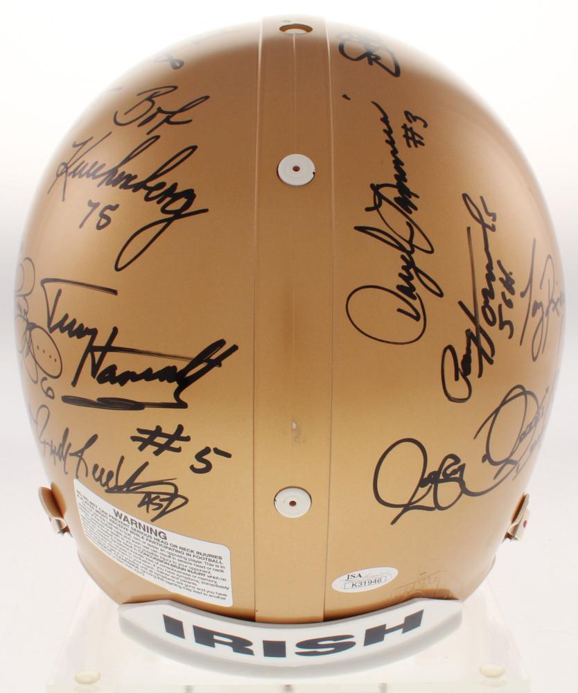 Notre Dame Fighting Irish Legends Full-Size Authentic On-Field Helmet Team-Signed by (22) with Joe Theisman, Paul Hornung, Raghib "Rocket" Ismail, Rudy Ruettiger (JSA COA)