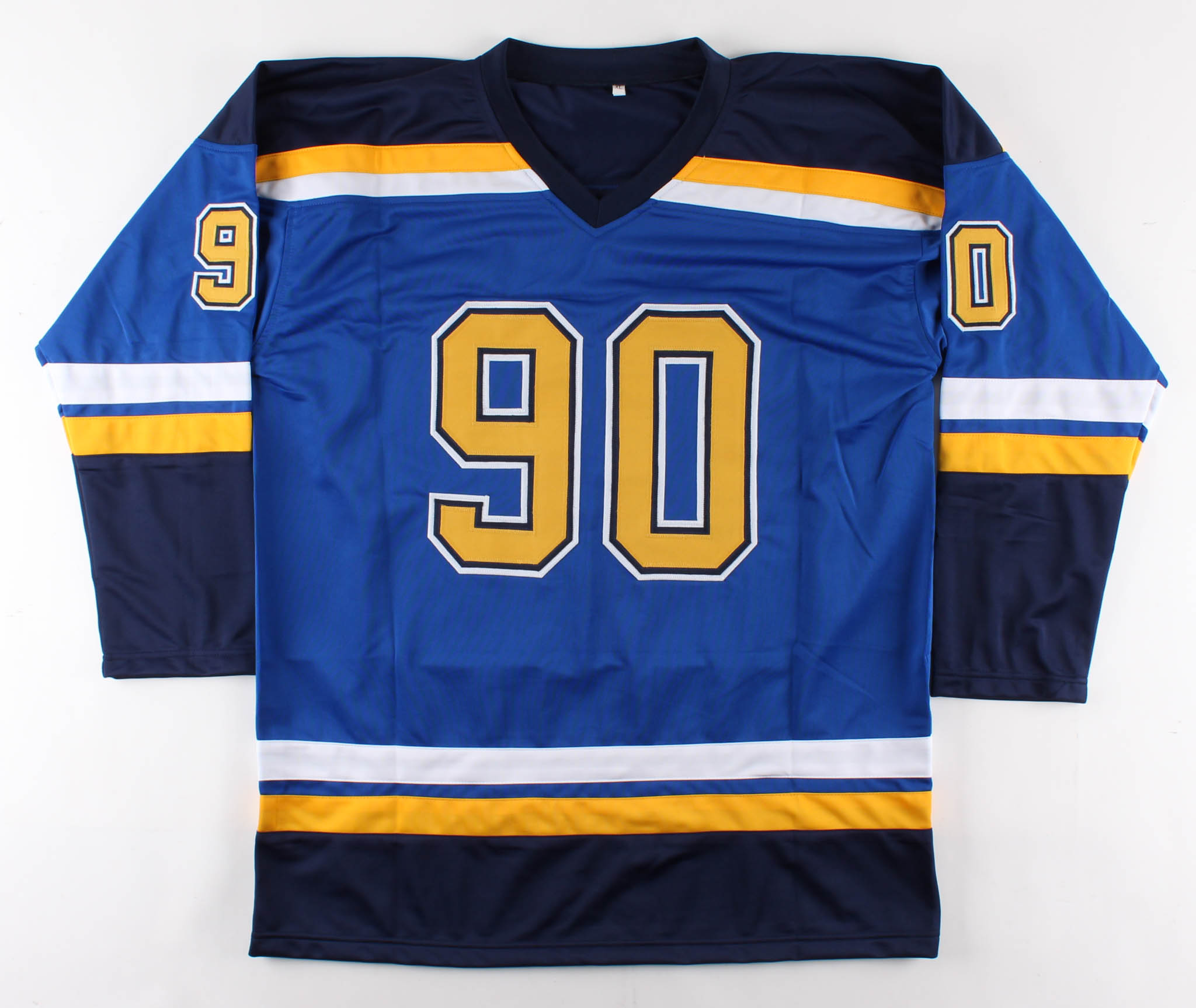 Custom on-ice style jersey. Everything is sewn on, size XL. Hand-signed black felt-tip pen by Ryan O'Reilly.