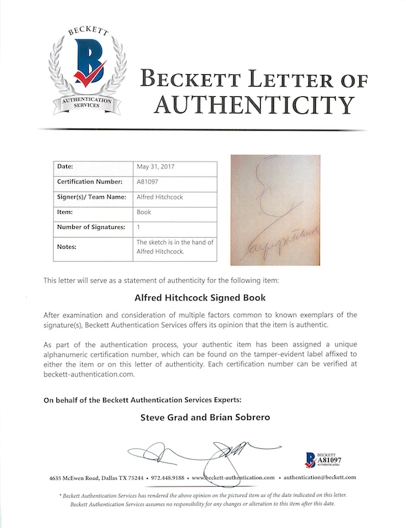 Alfred Hitchcock Signed "Alfred Hitchcock: A Baker's Dozen of Suspense Stories" Hardcover Book (Beckett LOA)