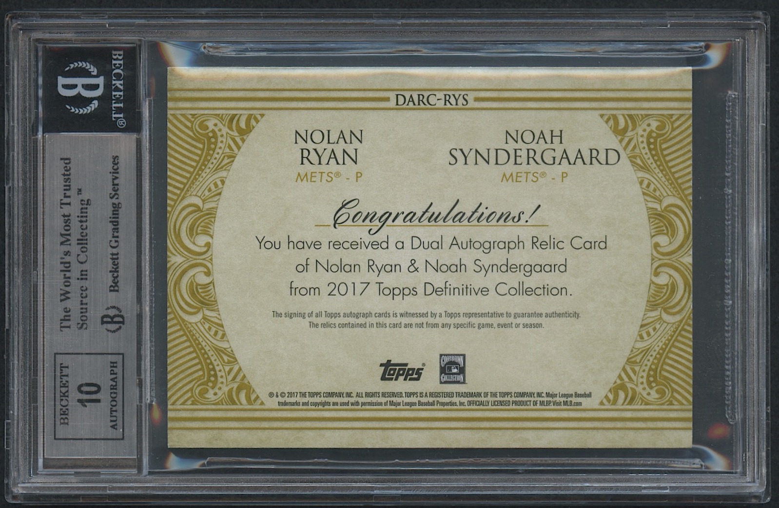 2017 Topps Definitive Collection Dual Autograph Relics #DARCRYS Noah Syndergaard / Nolan Ryan #02/25 (BGS 8.5)