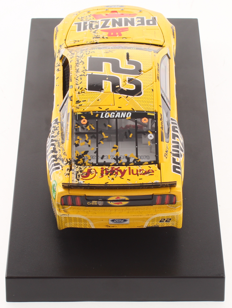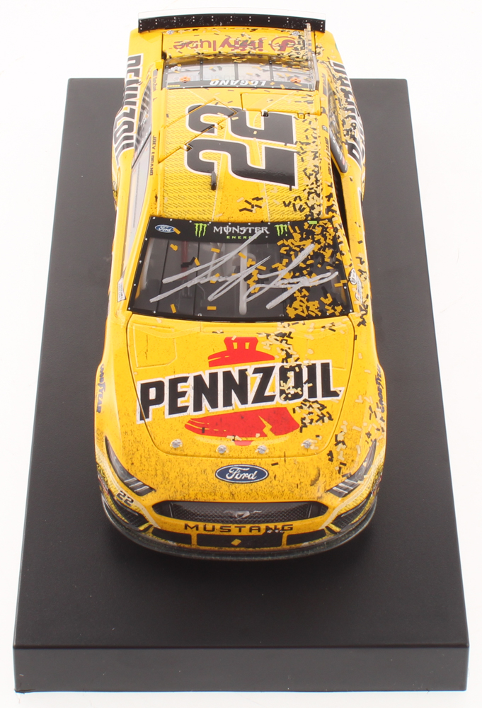 Premium die-cast car hand-signed on the windshield in silver paint pen by Joey Logano. The car is limited edition to just 72 produced and includes the original packaging.