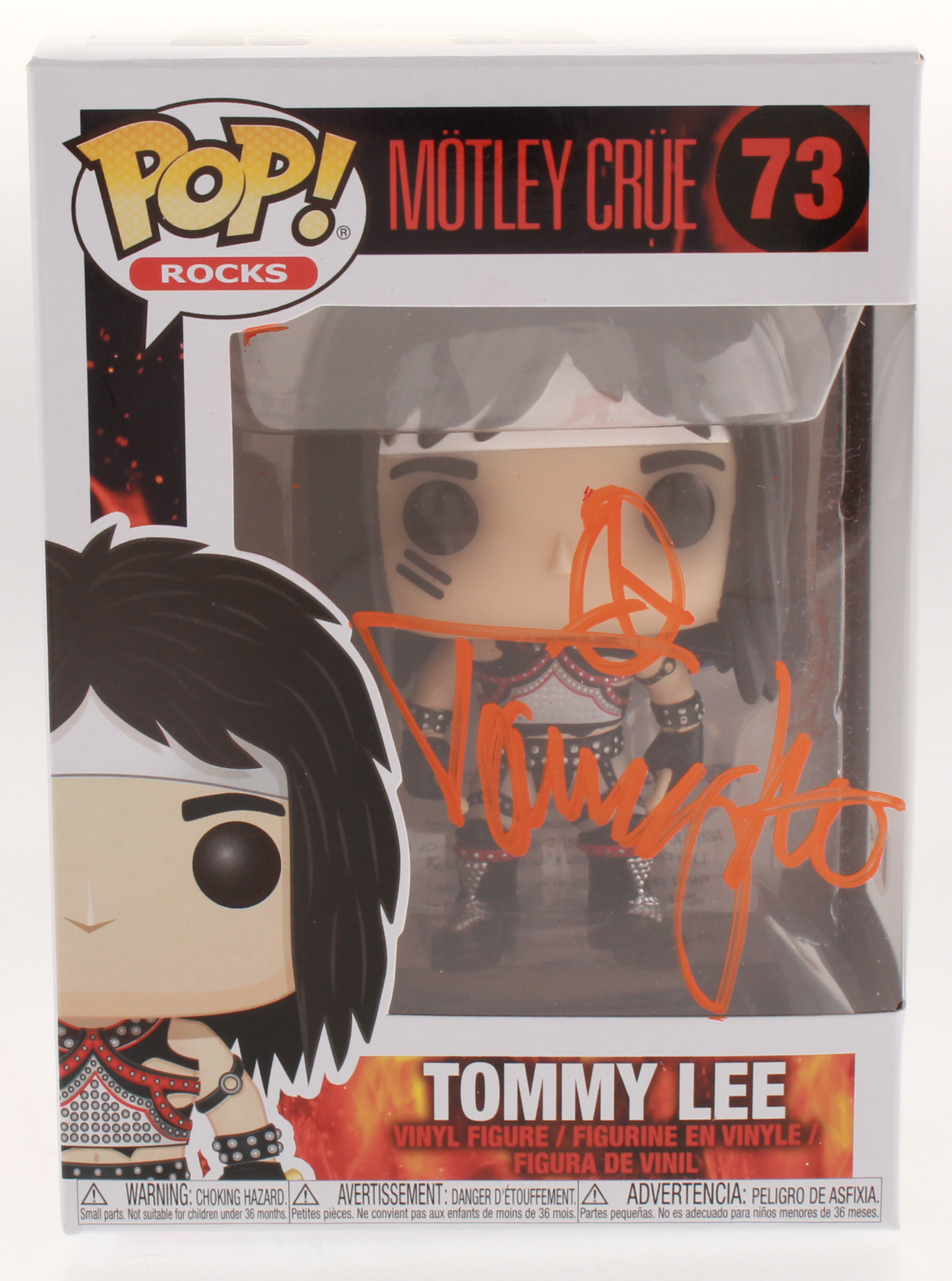 Funko Pop! vinyl figure measures approximately 4" in height. Hand-signed in orange paint pen by Tommy Lee.