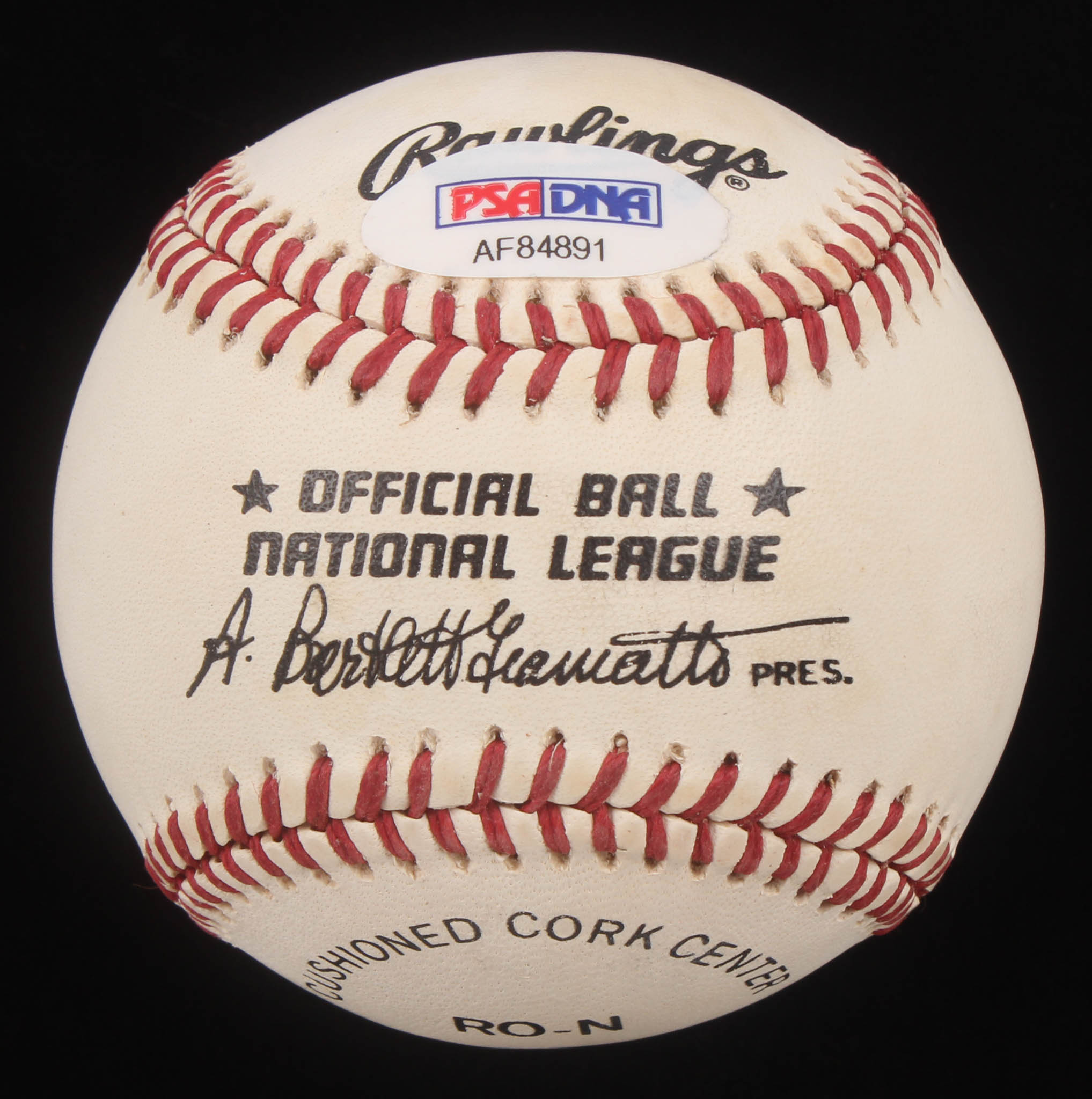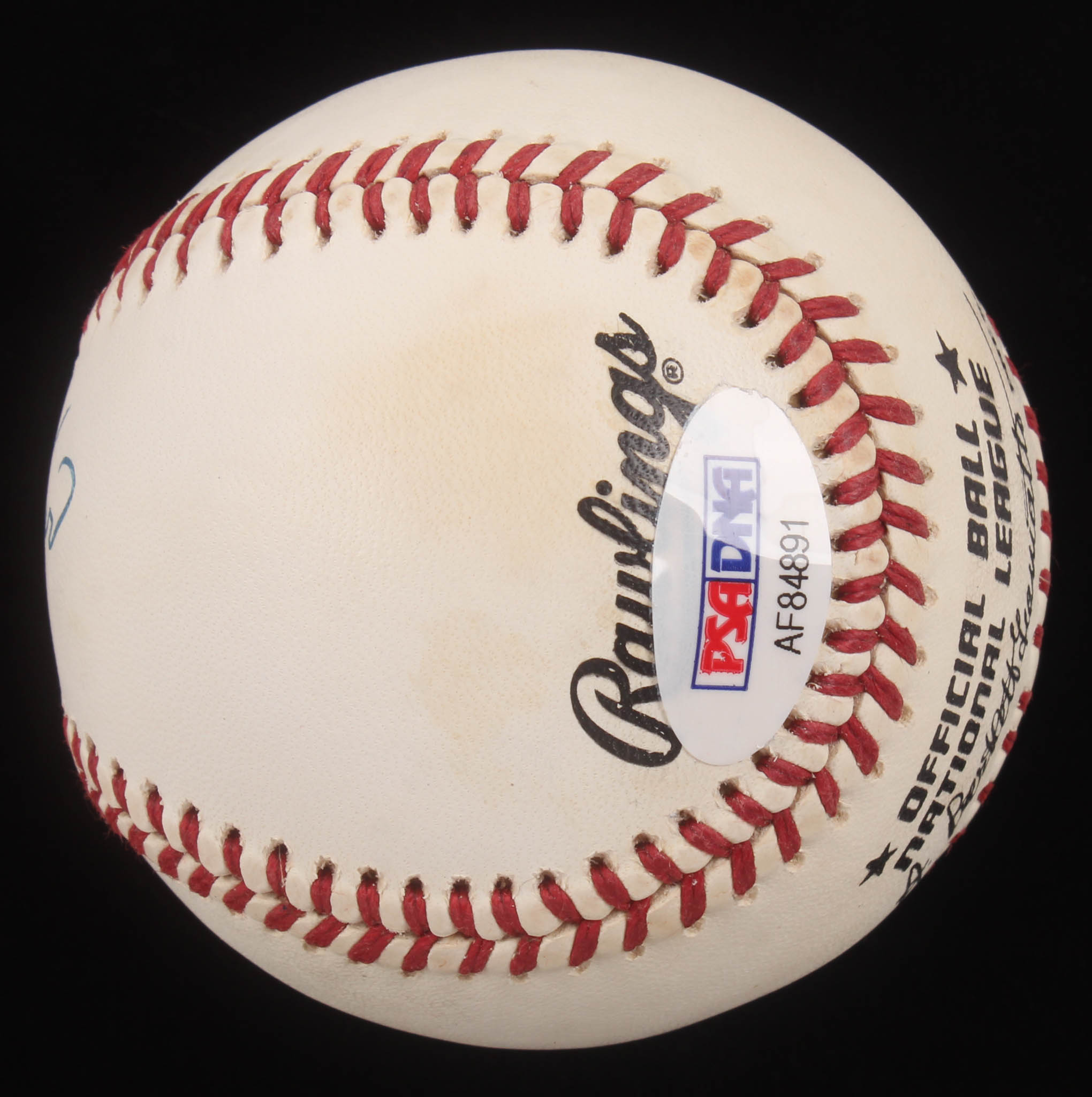 Rawlings Official National League Baseball. Hand-signed in blue ink pen by Ralph Kiner (D. 2014, Pittsburgh Pirates, HOF). Please see photos for details regarding the condition of the baseball.