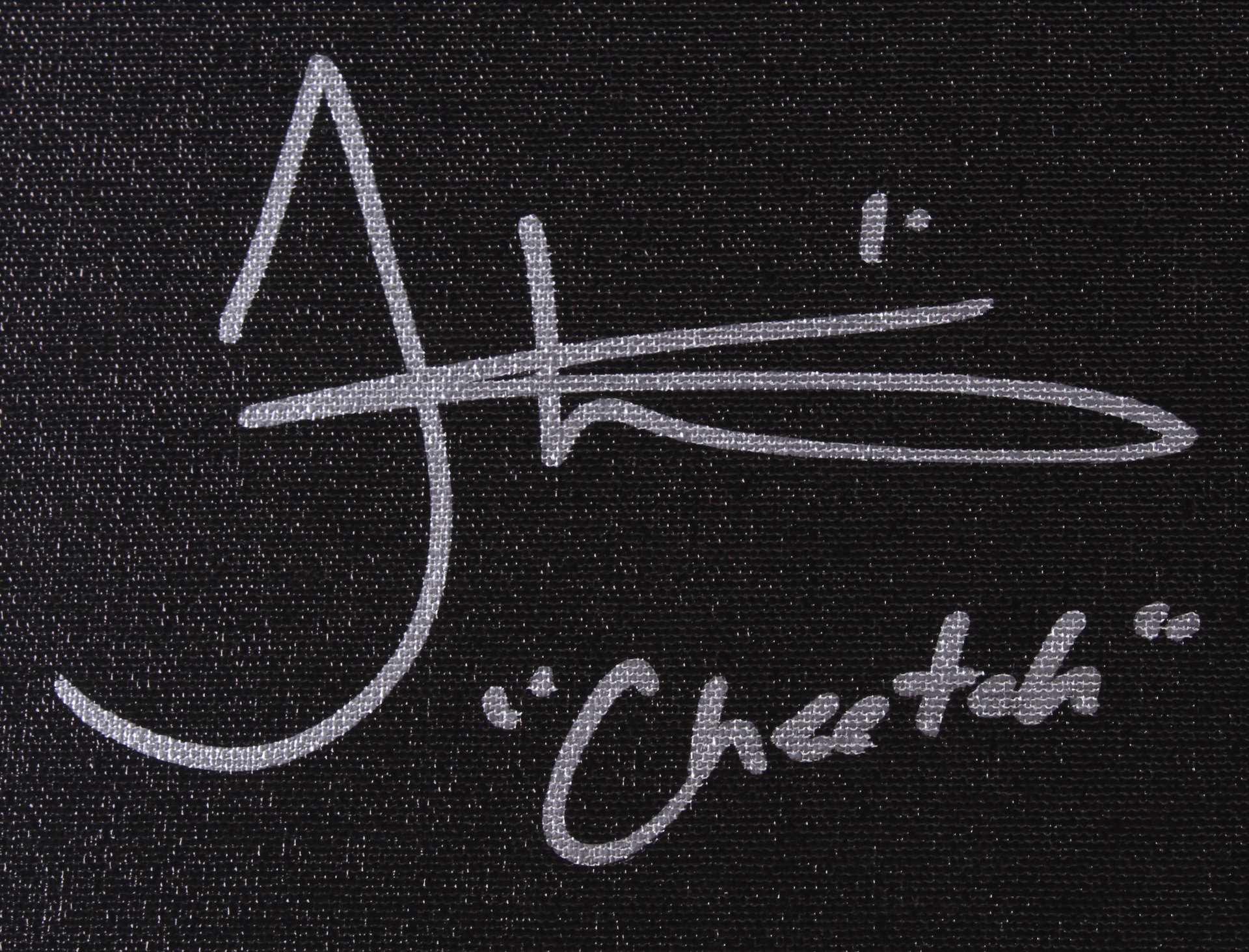 Canvas measures 16" x 20" x 1.5" in size and has been hand-signed and inscribed in silver paint pen by Tyreek Hill.