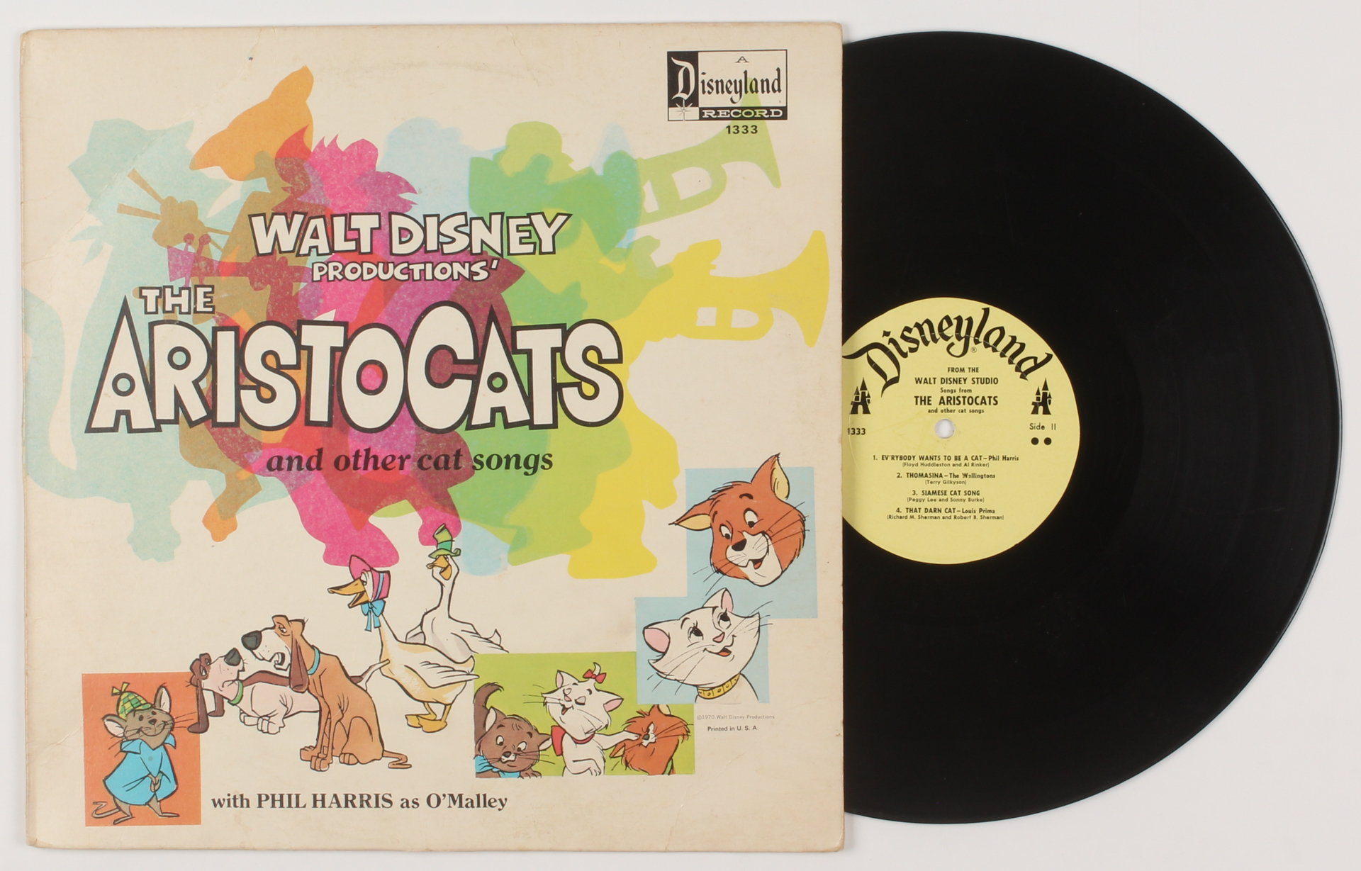 Vintage 1970 Walt Disney's "The Aristocats" Vinyl Disneyland record album soundtrack. Please note, the vinyl record is included as shown. Please see photos for details regarding the condition of the album.