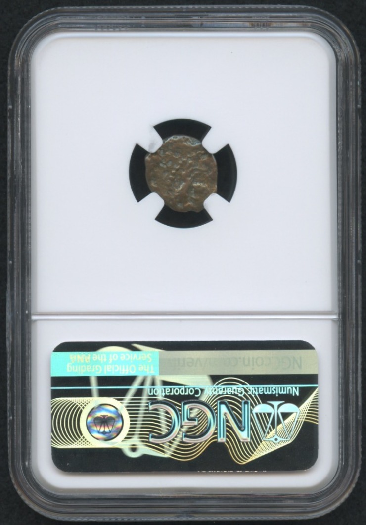 Very rare authentic bronze Mite coin. The coin has been authenticated and encapsulated by NGC (Numismatic Guaranty Corporation).
