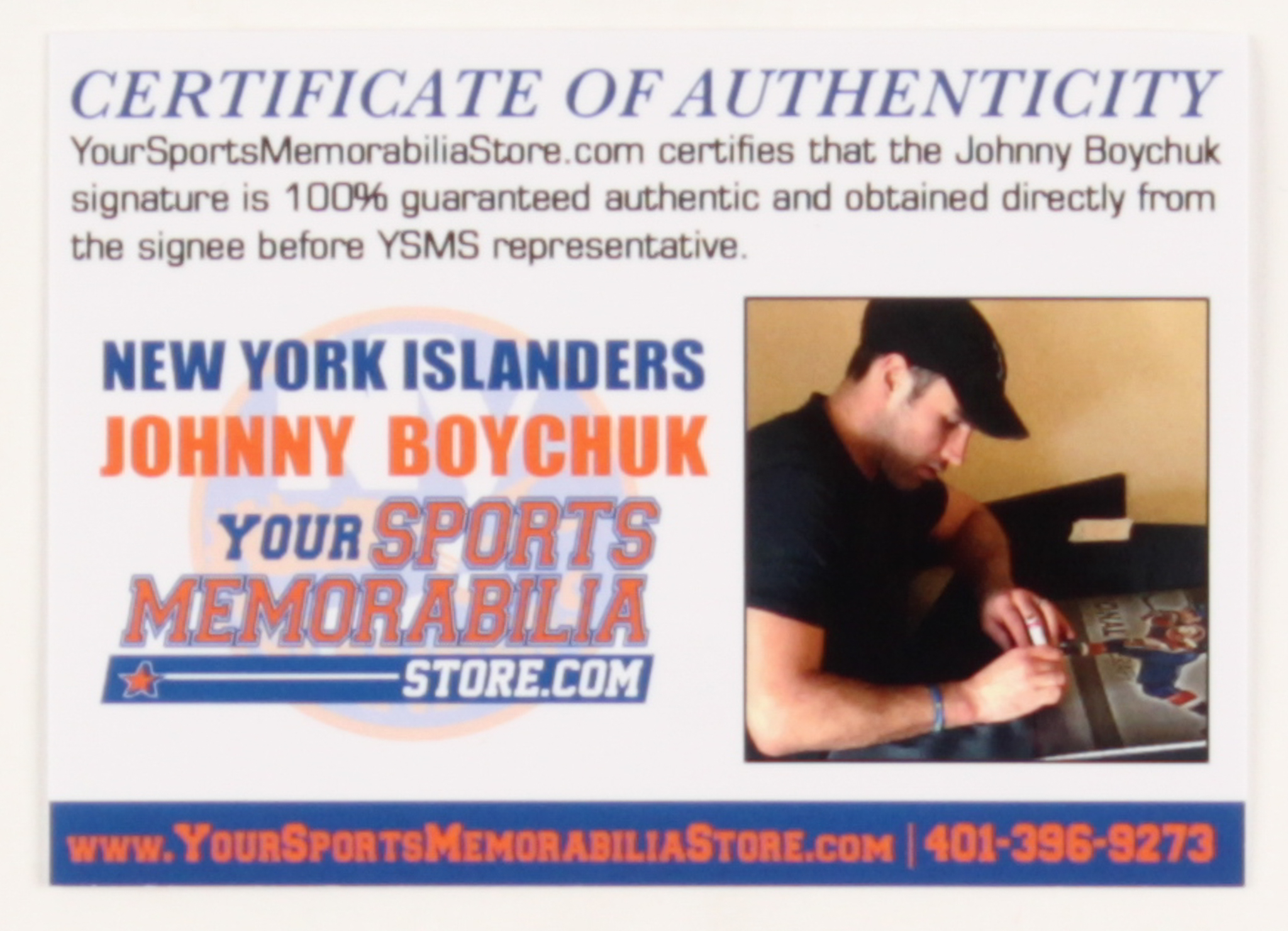 The lot / autograph(s) includes an official Your Sports Memorabilia Store Johnny Boychuk hologram and COA for authenticity purposes.