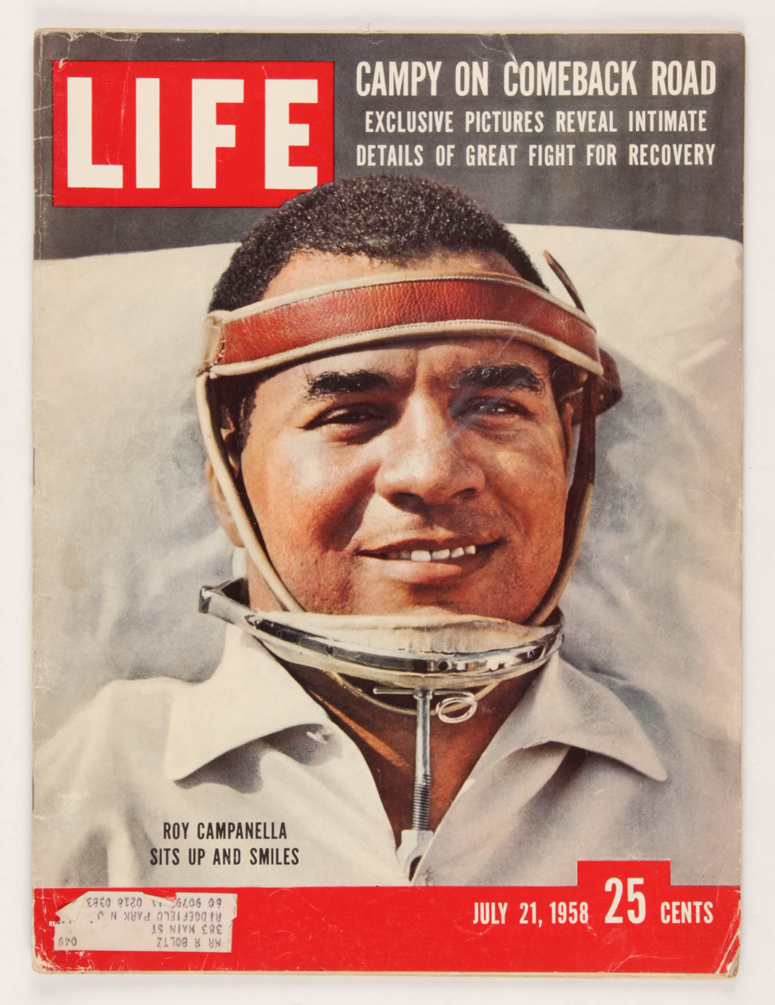 Roy Campanella is widely considered to have been one of the greatest catchers in the history of the game. He played for the Brooklyn Dodgers during the 1940s and 1950s, as one of the pioneers in breaking the color barrier in Major League Baseball. His career was cut short in 1958 when he was paralyzed in an automobile accident.