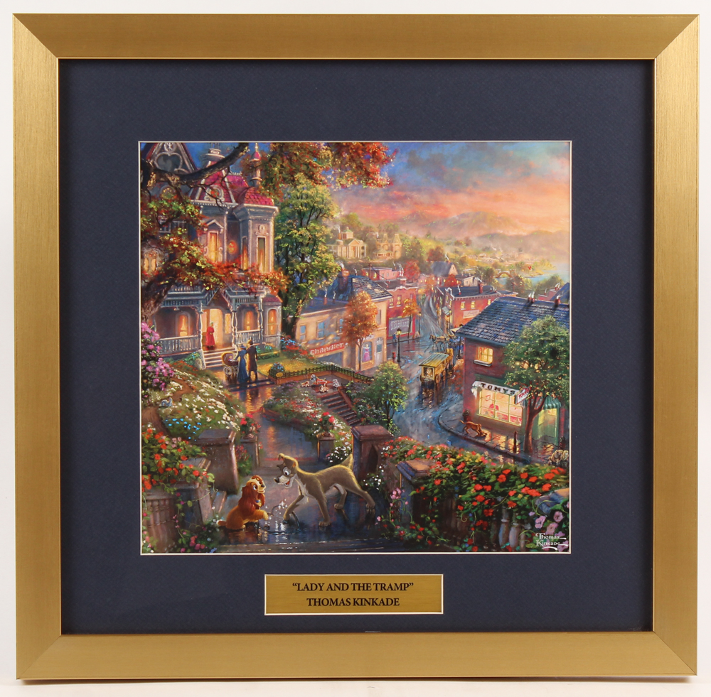 Thomas Kinkade Walt Disney's "Lady and the Tramp" 17.5x18 Custom Framed Print Display