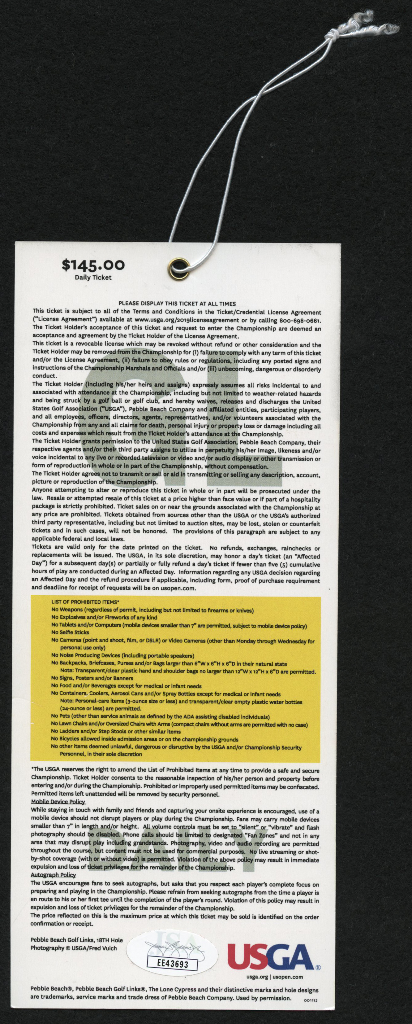 Phil Mickelson Signed 2019 U.S. Open Ticket (JSA COA)