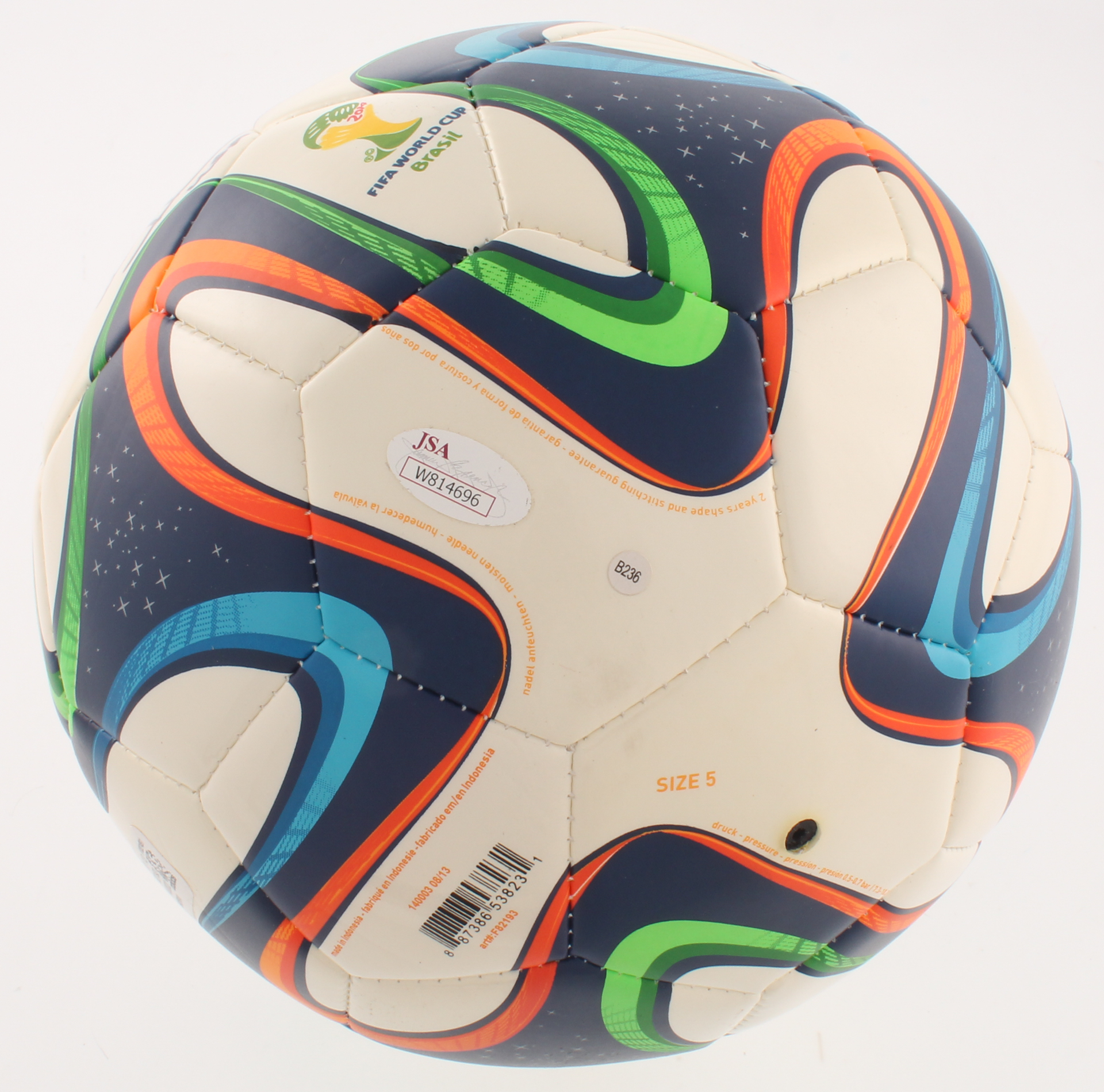 Adidas 2014 FIFA World Cup soccer ball. Hand-signed and inscribed in black felt-tip pen by Tim Howard.