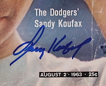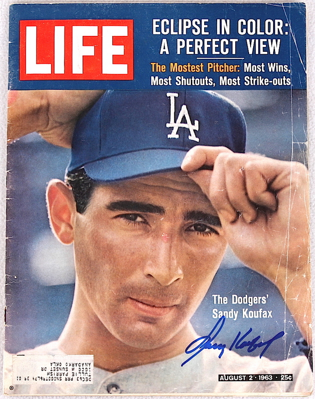 Original August 2, 1963 issue of Life magazine hand-signed on the cover in blue felt tip pen by Sandy Koufax.