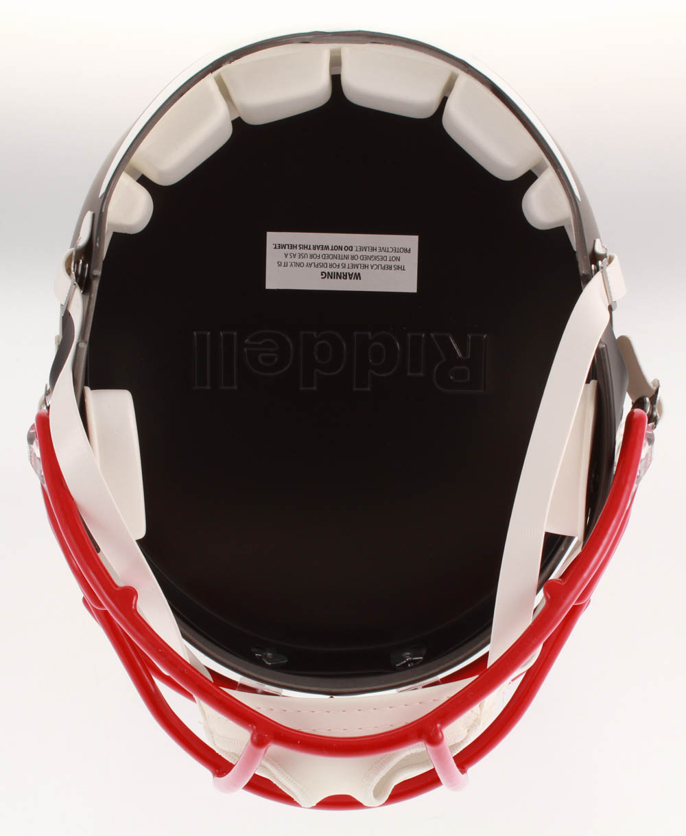 Riddell New England Patriots full-size replica matte black Speed helmet. Hand-signed and inscribed in silver paint pen by Julian Edelman.