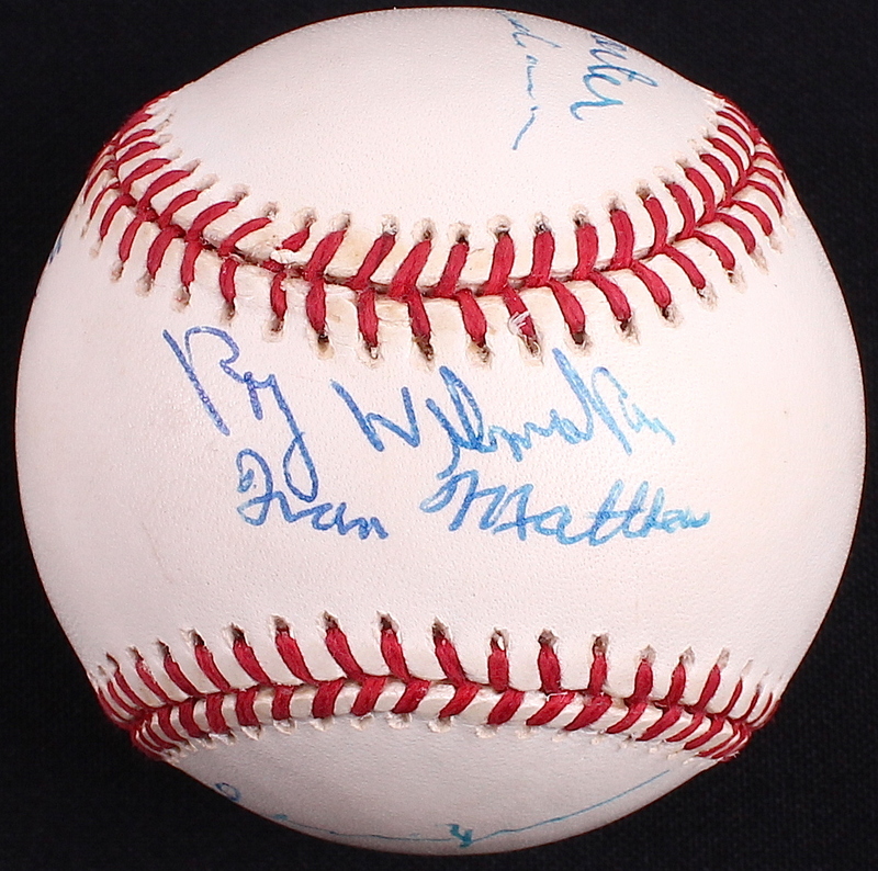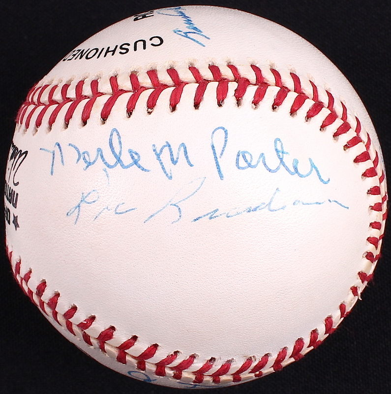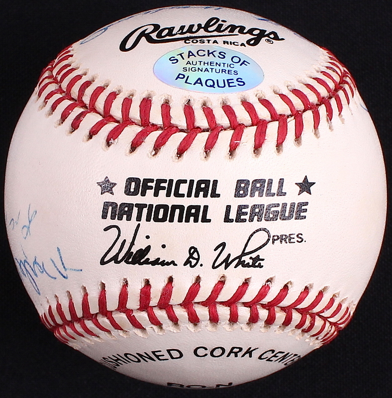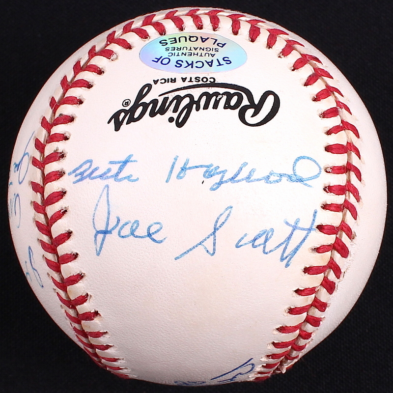 Official National League baseball signed by a total of (10) Negro League players. Autographs include Fran Matthews (Giants, D 1999), Andy Porter (D 2010), Joe Filmore (D 1992), Merle Porter, Joe Scott (YankeeS, D 2013), Buster Haywood (D 2000), & More. The autograph includes an official Stacks of Plaques hologram and matching COA for authenticity purposes.